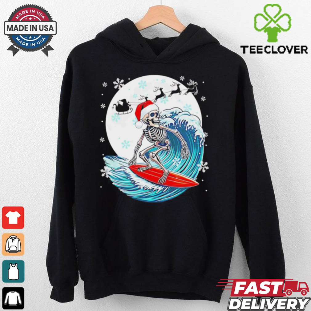 ()Christmas Santa skeletons surfing lovers shirt hoodie, tank top, sweater and long sleeve t-shirt: best style for you