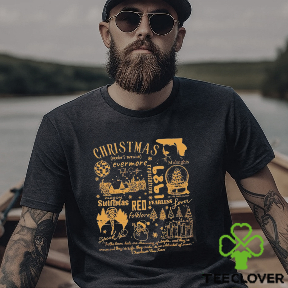 The English term Christmas (Old English, Cristes maesse) is actually of Christmas Taylor’s Version Sweatshirt, Have A Merry Swiftmas Shirt recent origin: the feast day only began to be widely celebrated with a specific liturgy (the Cristes maesse) in the 9th century. The earlier term Yule, from the Germanic jōl or the Anglo-Saxon geōl, referred to the feast of the winter solstice, and made no mention of Christian church liturgy or practices. On Christmas Day, the Church traditionally celebrated three Masses. The first of these took place at midnight and celebrated of the actual birth of Christ. None of the contemporary Christmas customs have their origin in these liturgical affirmation (or masses), and most are of a much more recent date. The exchange of gifts originally took place in the early hours of the 25th when people returned home from the first, midnight mass. When it became customary to open gifts later in the day, the times of many church services were altered – another example of how far from the idea of the liturgical ‘Cristes maesse’ the holiday has come.