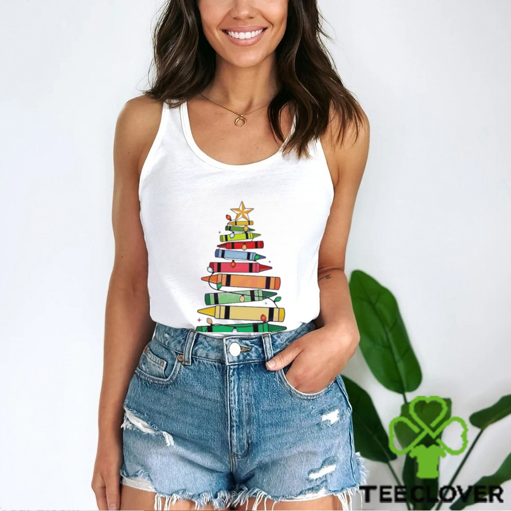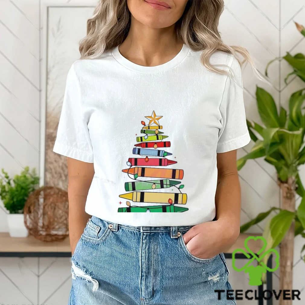 ()Christmas Teacher Crayon Christmas Tree Shirt hoodie, tank top, sweater and long sleeve t-shirt