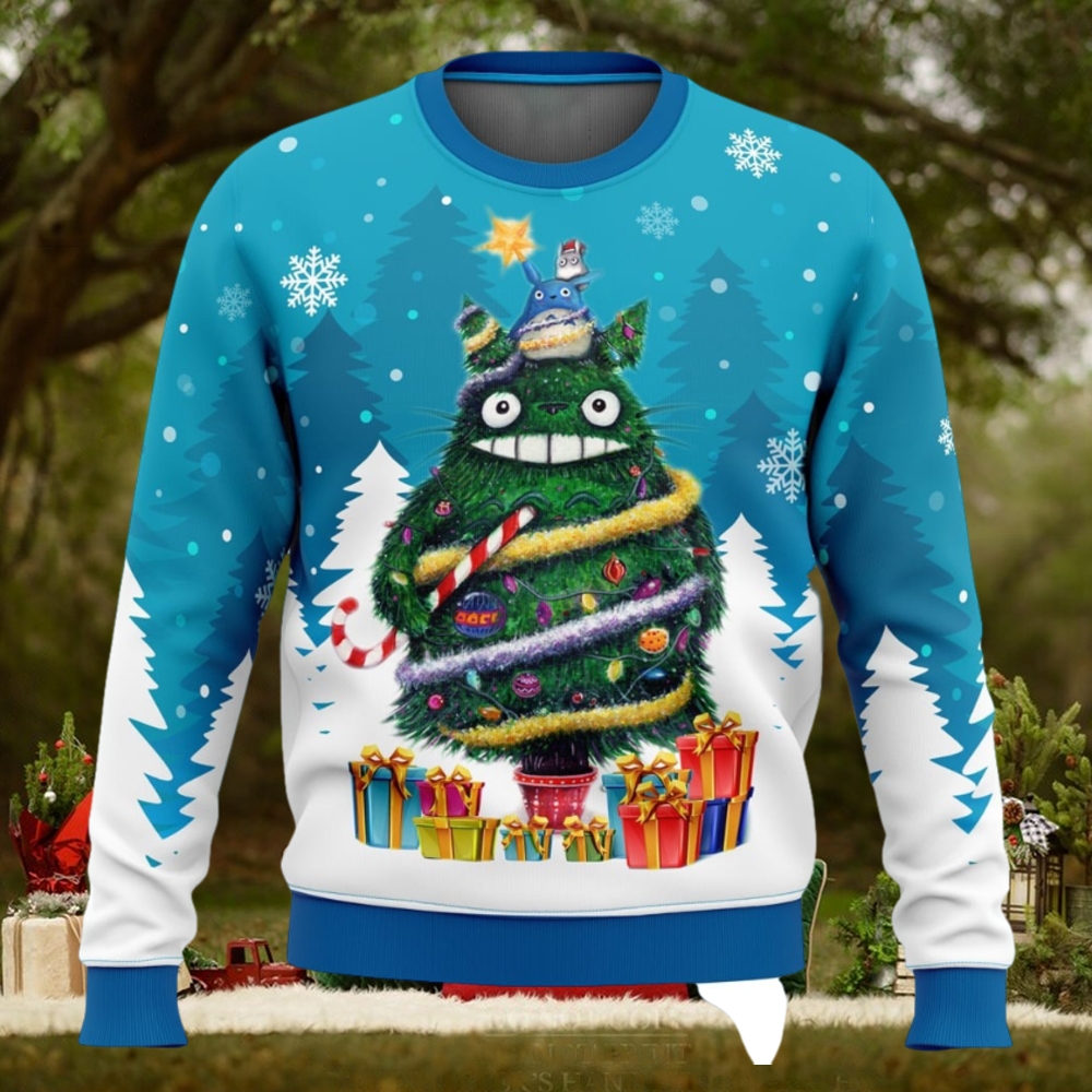 ()Christmas trees are sold all over before christmas. There are several types of Christmas Totoro My Neighbor Totoro Ugly Christmas Sweater : There are cultivated trees that have been cut and shaped to be dense and ideal in shape. And there are naturally grown trees right from the nearby forest. They are not as βprettyβ, because they are just how they happened to grow. I value the natural trees, because they give me a better feeling about the connection with my natural surrounding. I give the highest value to a tree I have cut myself, but this isnβt always possible, so I usually buy a natural domestic tree.
