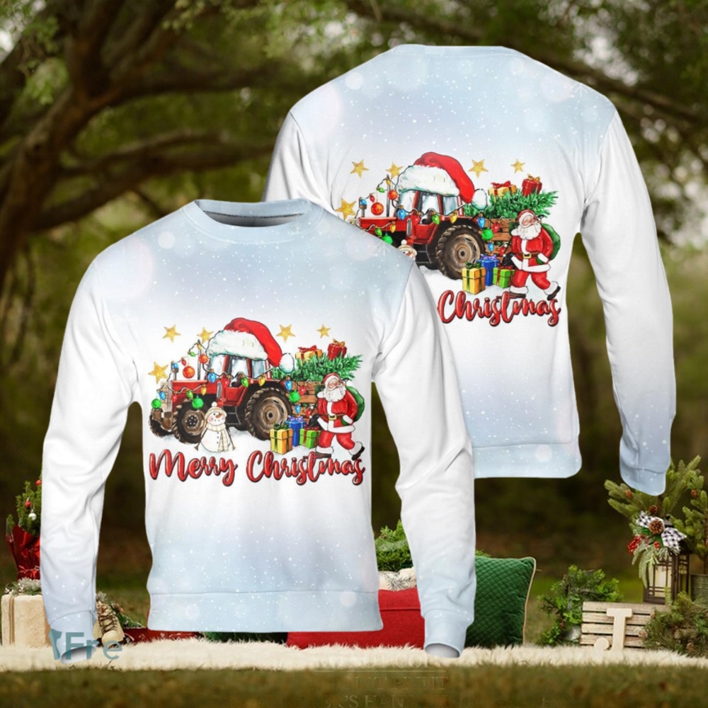 Best Christmas Tractor With Santa And Snowman Christmas Sweater