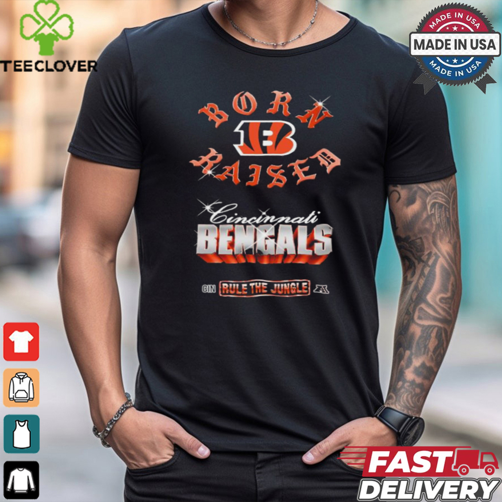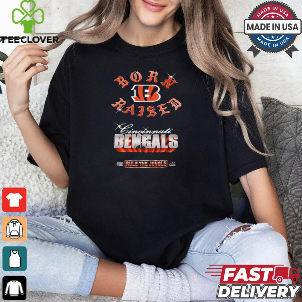 Now and again, playing some Cincinnati Bengals Born x Raised Black Chrome Rocker Shirt sound assistance decrease yelping. There are numerous CDs for hounds who need unwinding. A pheromone diffuser might be useful on the off chance that you as of late protected a canine and it is making some hard memories adjusting to new commotions and scents. Mutts will in general bark less whenever permitted to remain in the home versus kept in the yard throughout the day. Canines are pack creatures and flourish with human friendship. It is imperative to place some exertion in deciding why your canine is yapping so to help diminish the woofing in any case. Heading off to the base of the issue is vital.