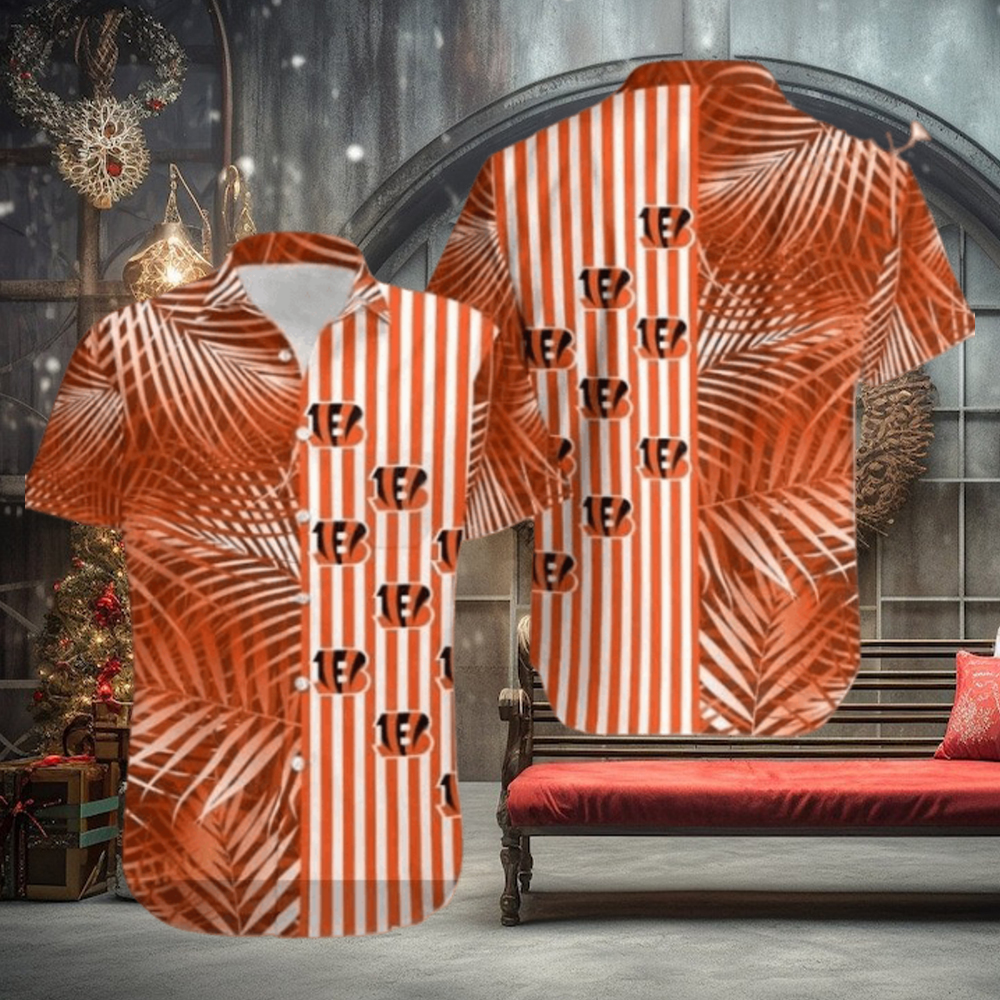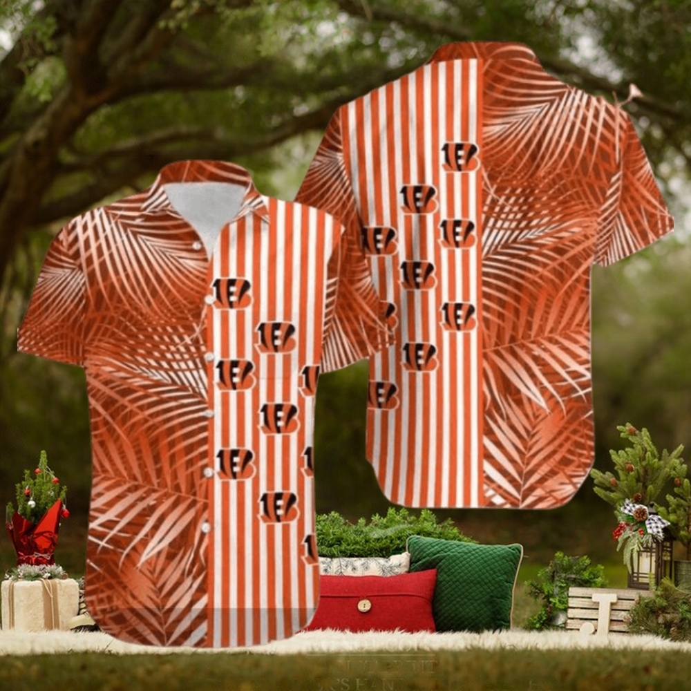 ()Cincinnati Bengals Palm Leaves And Stripes NFL Gift For Fan Hawaiian Shirt,