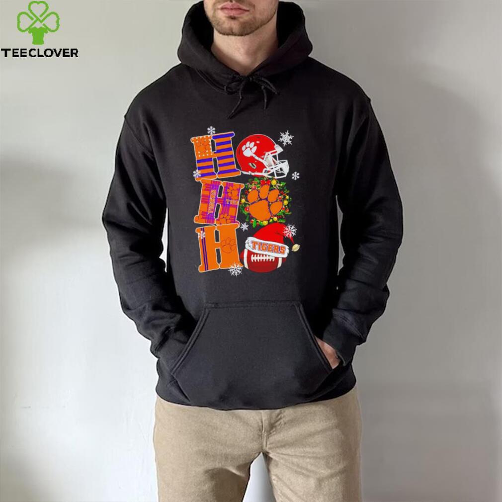 One of the books of the bible tells the story of the Clemson Tigers NCAA ho ho ho Christmas shirt .. And how they began. The missing book is the book of Enoch. And it tells the story of how magic started. Basically there were angels who looked down on man and wanted to be with the females and they left heaven to come down, and they mated with the women and started families but they also taught man the sacred magics, the magic of metals, making iron, brass, copper and gold and silver. They taught them the medicine magics and how to heal themselves with herbs and even how to abort a baby. They taught them the mystical secrets.. Of heaven presumably. Of numbers and letters. This tribe of people was called the magi. Because they were like magicians to the other peoples. And possessed knowledges unknown to them. God became so outraged when he found them out , that he is said to have killed all the off spring of the angels who were a giant people. And produced giant children much larger than the other people – and he punished the Angels.