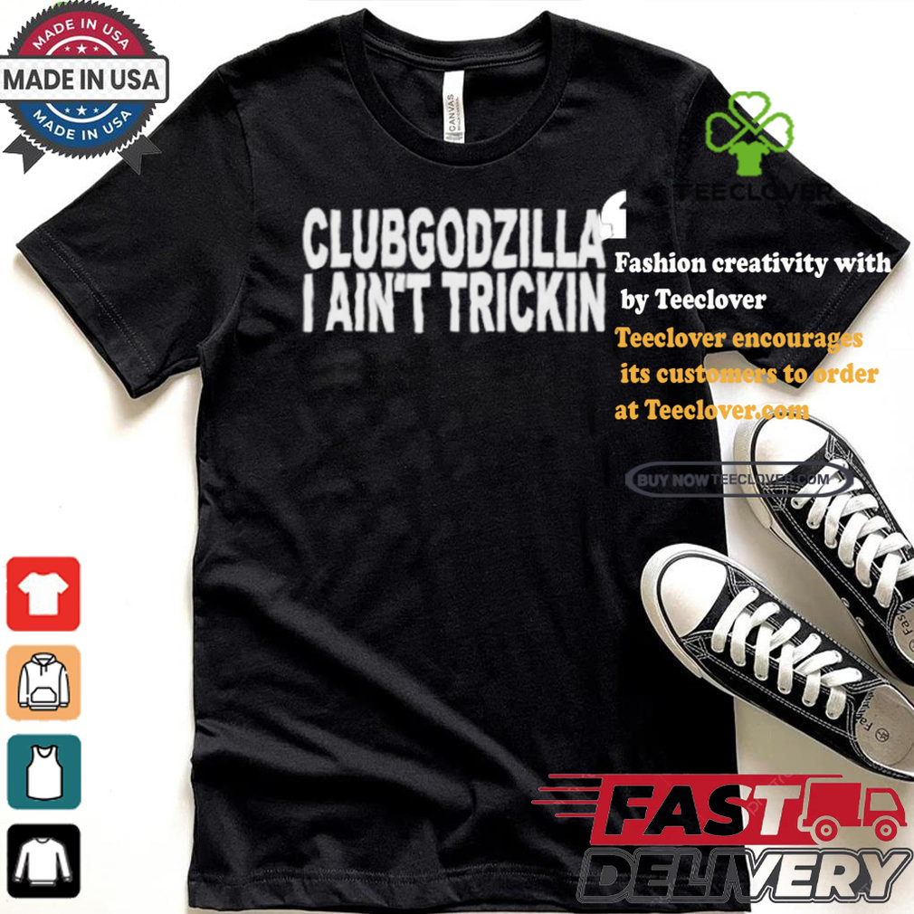 I do not remember Christmas Day itself that year, but the events around theClubgodzilla I Ain’t Rockin T shirt this holiday changed my life forever. I was living in Los Angles at the time and was dirt poor as I was very underemployed. I did not have any ambition, but was content. I had a new girl friend (we had been dating for not yet six weeks). I was too poor to buy a Christmas tree. It had been raining for about a week, and was expected to raining for the next week (for those of you that do not know the weather for Los Angeles, this was highly unusual). Three days before Christmas I was driving around with my girlfriend doing some last minute Christmas shopping, when an announcement came on the radio that they were giving away free Christmas trees at a location about one half mile from where we were. I looked at my girlfriend and she said, “Yes, let’s go get a Christmas tree” A couple left turns later, there we were. There was a truck with two trailers full of Christmas trees trying to give them away. The owner of the property where the truck was park had call the police and wanted them to be charged with trespassing. He had Christmas tree lot down the street and this was killing his business.