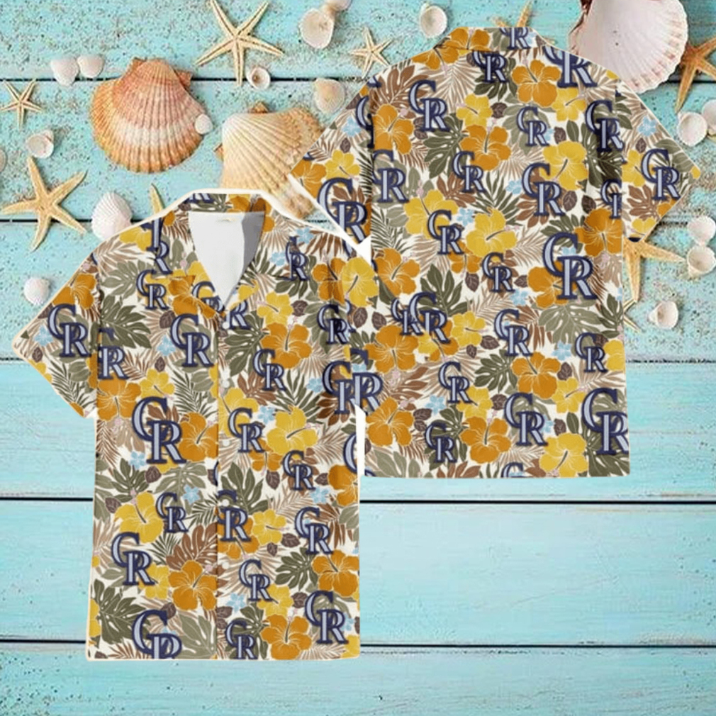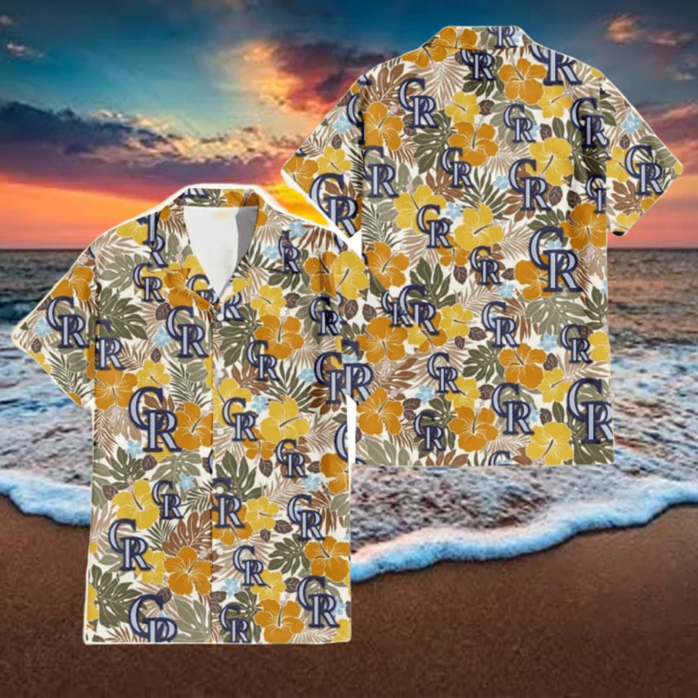 Best Colorado Rockies Brown Yellow Hibiscus White Background 3D Hawaiian Shirt