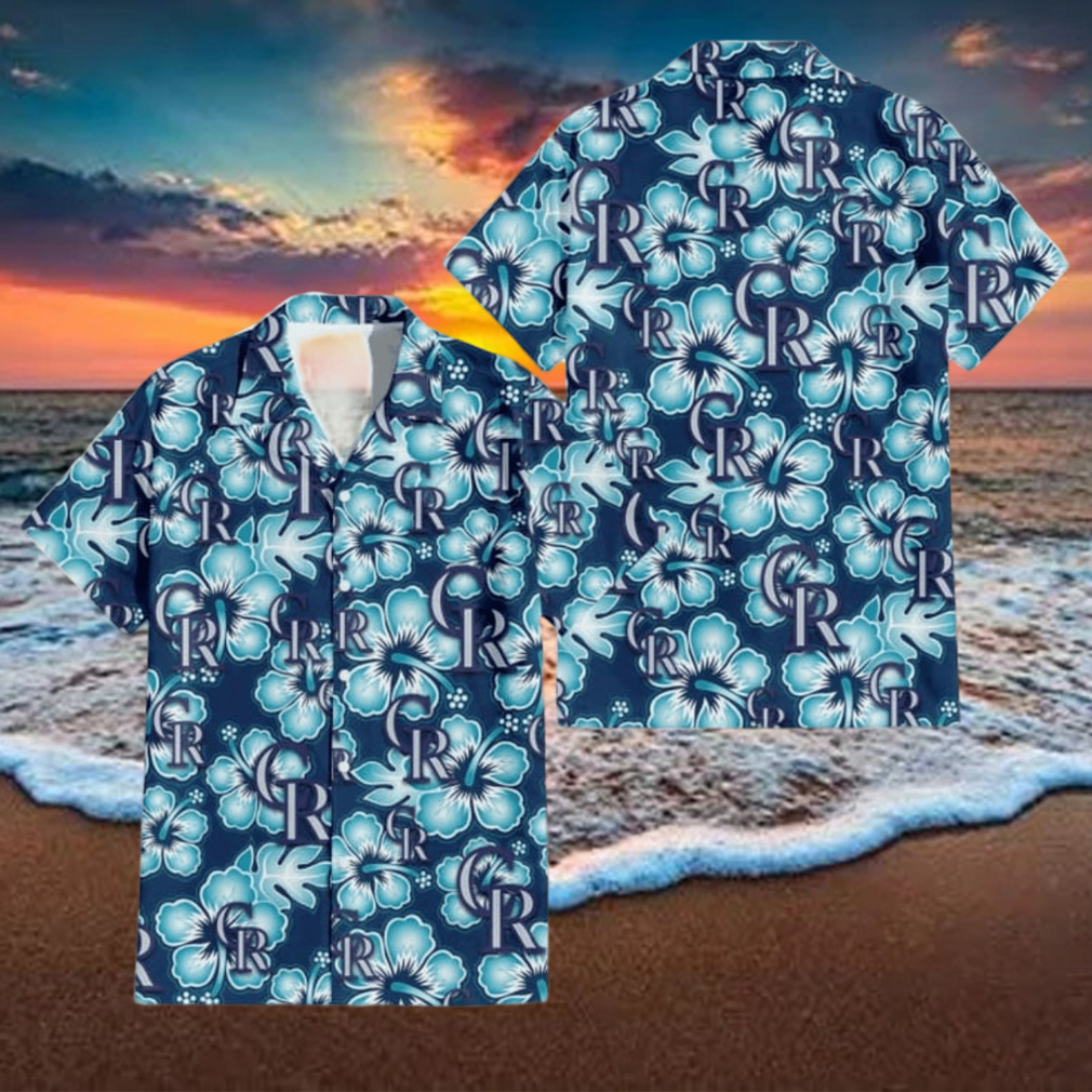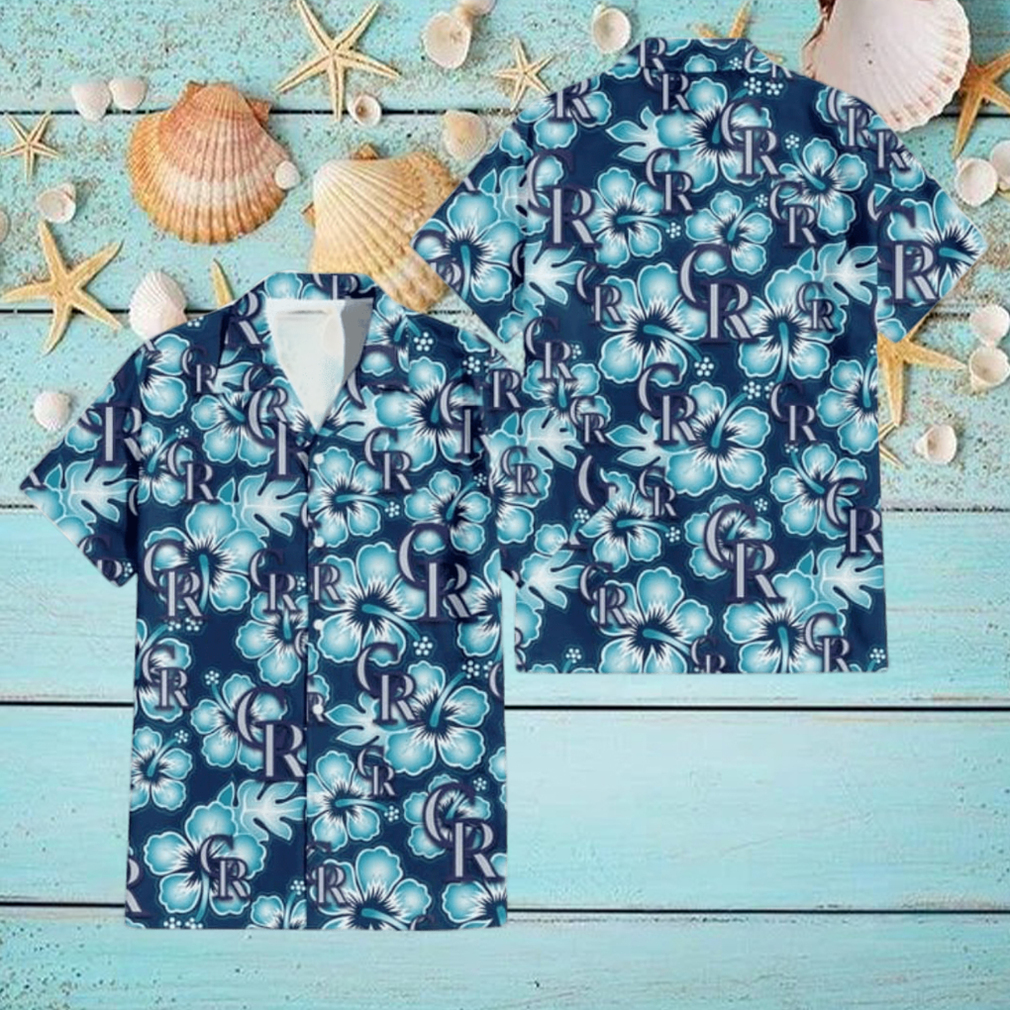 Colorado Rockies Dark Turquoise Hibiscus Navy Background 3D Hawaiian Shirt
