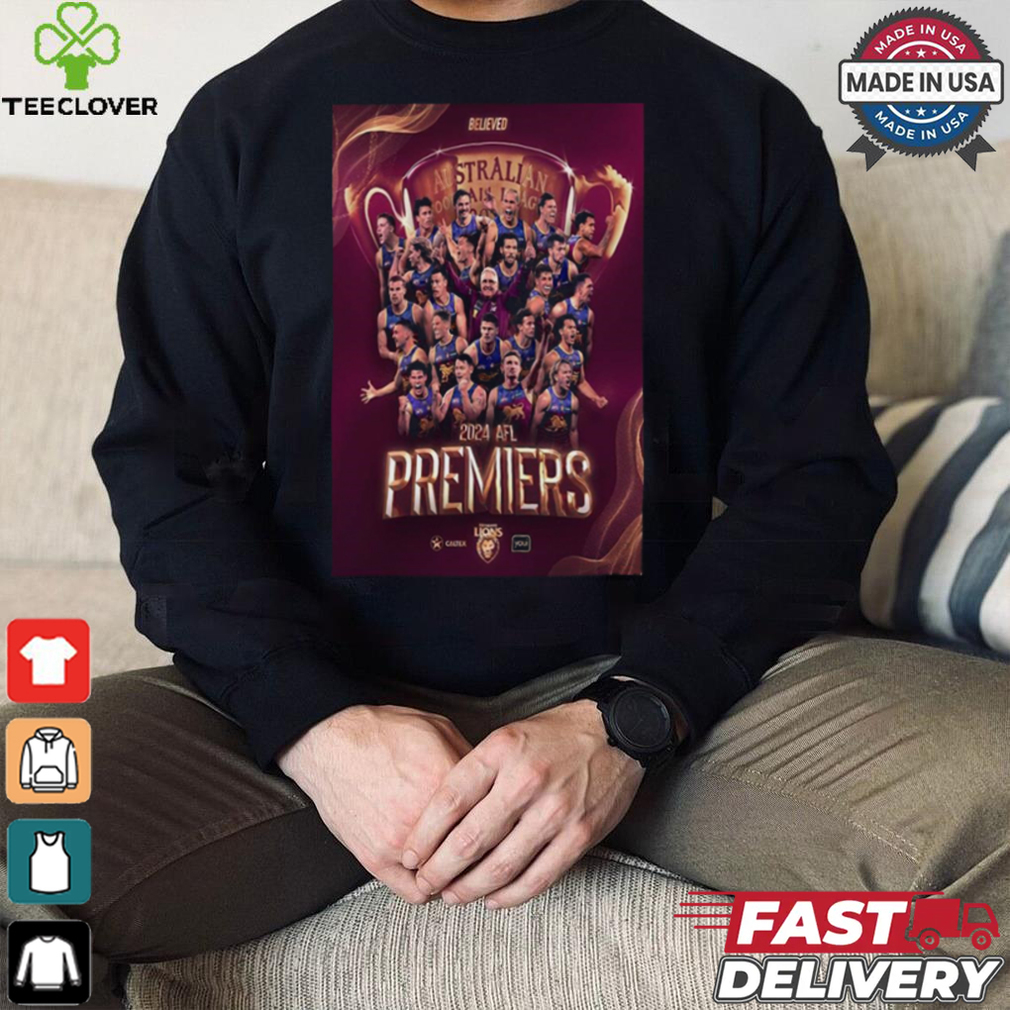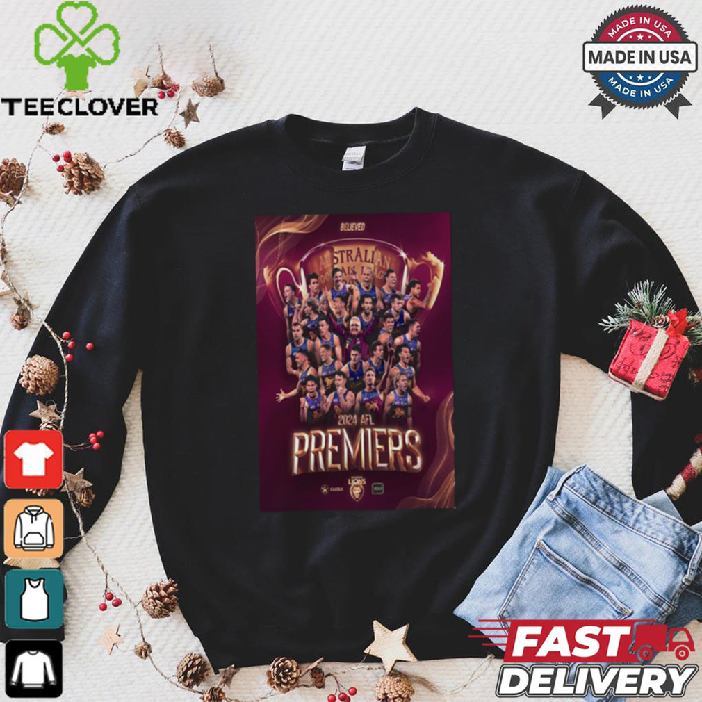 As someone who usually doesn’t get gifts and has a hard time getting and Congrats Brisbane Lions 2024 AFL Australian Football League Premiers SHIRT receiving them and finding what I want, it helps when there’s is secret santa stuff. So I helped out by participating and got picked to give a gift to this nice girl I knew. On the day of gift giving, as it was a surprise, I tapped her on the shoulder as she turned around, putting the gift in her hand in a smooth motion. It was one of the things on her wish list. Stunned in a good way, she said βthank you!β After saying my name. A minute later, a person I didn’t know as well, gave me a gift. I’ve never really celebrated it outside my family, and didn’t think I would get one. It was neat, and a very nice surprise, as we didn’t associate much with each other. I thanked her, and then again more than twenty minutes later as class ended. But the kicker: it was lunch time, and I was going to the bathroom, as per usual. Then this other person I know, a lot better, and am better pals with but don’t always get to hang out, but find much in common, called me over. I waited patiently to see what it was all about. We never really hung out at lunch, and last time she had asked me a question, so I had answered her. Our relationship wasn’t bad.