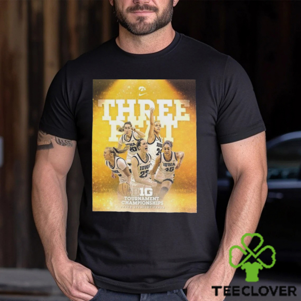 Since many households would hold parties during these two evenings, they may not concentrate on their jobs as they do in the Congrats Iowa Hawkeyes With Three Peat Big 10 Tournament Champions Three Straight Years Shirt time. Therefore, the company would rather let their employees stay at home to do some shopping and preparation than stay in the office to think something else not related to work. There has a policy stating that Christmas Eve is a holiday in employee handbook or employment agreement or contract. It might state that employees receive paid time off or premium pay for working on the holiday. For those retail business workers who are more busier during these two days, they may arrange other time to have a rest, while those who have these two days off and get paid would not have this advantage. They probably arrange another two holidays for working days or do not compensate overtime work. For those companies who do not need to deal with customers, if multiple employees ask for the time off, the company could accommodate such requests.