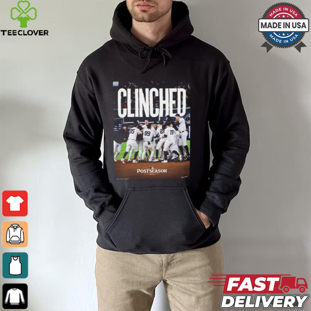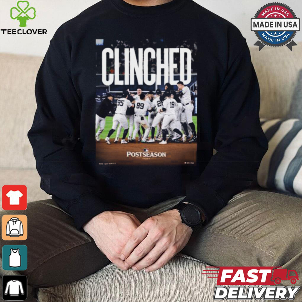 At this point Mephistopheles returns and Beethoven informs the Congrats New York Yankees Clinched 2024 MLB Postseason Unisex T Shirt that he will not allow his music to be destroyed. Desperate to receive the Tenth Symphony, Mephistopheles makes another deal: if Beethoven will give over only the Tenth Symphony, then Mephistopheles will not take the composer’s soul. After an appearance by Mozart’s ghost, Beethoven refuses this offer as well. As a final tactic, Mephistopheles points out the window to a young orphan and describes the tortures that she will receive if Beethoven refuses to hand over his music. Heartbroken, Beethoven agrees to hand over his Tenth Symphony. After Twist’s prompting, a contract is drawn up by Fate stating the following.