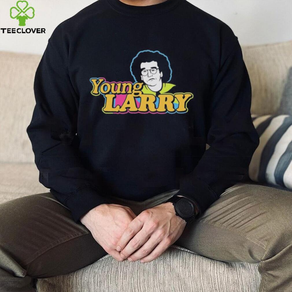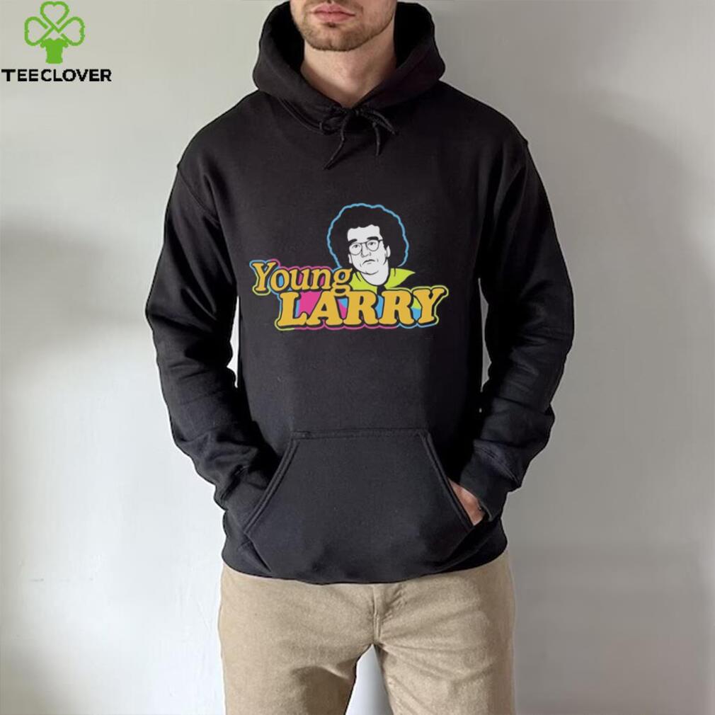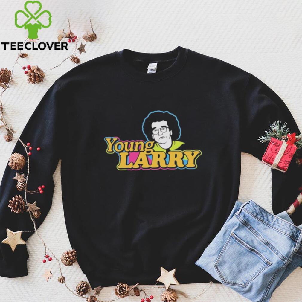 teens start babysitting at about eleven. I’m almost sixy and folks my age were tensing newborns by ourselves at 10 or so. (We were tensing with adults around at 7 and 8) Thirteen, unless there is some developmental reason the Curb Your Enthusiasm Young Larry Shirt..is more than fine. Was she supposed to just not go to work? We’re you around to care for the infant? Edit: as for the stove top,, that was three months ago. Maybe he’s shown he can and besides. Cooking and watching a baby that will probably be sleeping most of the time are two different things. It really does sound like you’re just searching for a reason to accuse her of being a bad mother. Ahat do tou do when tou work when you are caring for your child fifty percent of rhe time?