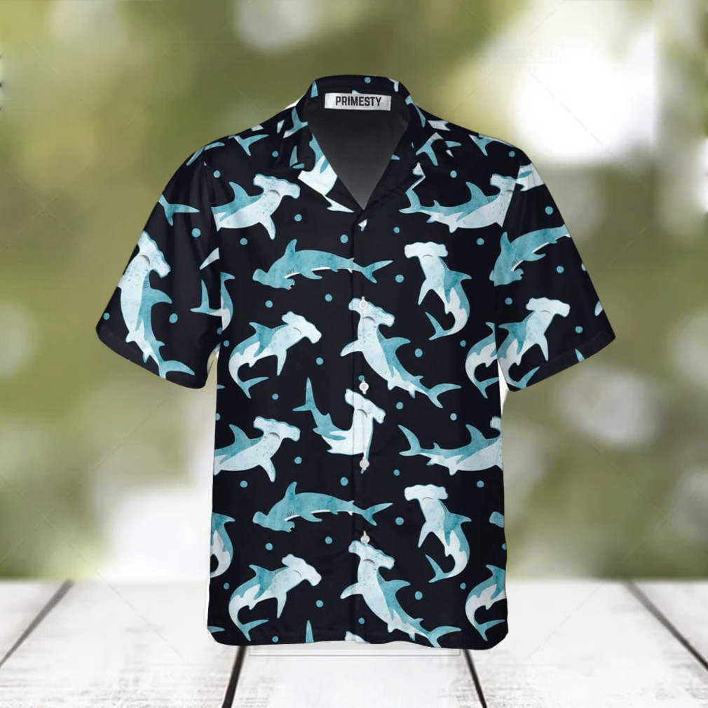 Best Cute Hammerhead Shark And Blue Dot Pattern Shark Shirts For Men Shark Tropical Hawaiian Shirt
