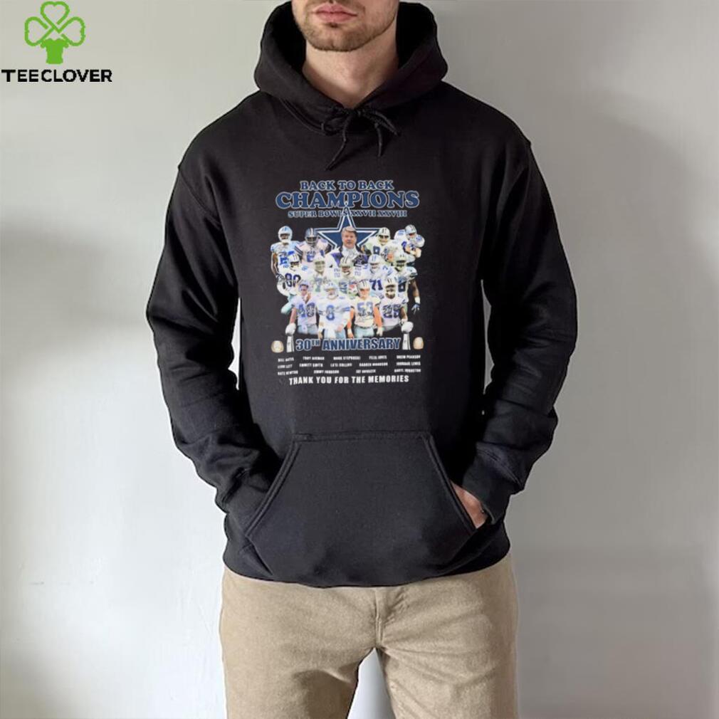 Dallas Cowboys Back To Back Champions 30th Anniversary Thank You For The Memories Signatures Shirt, Hoodie, Sweater, Vneck, Unisex and T-shirt