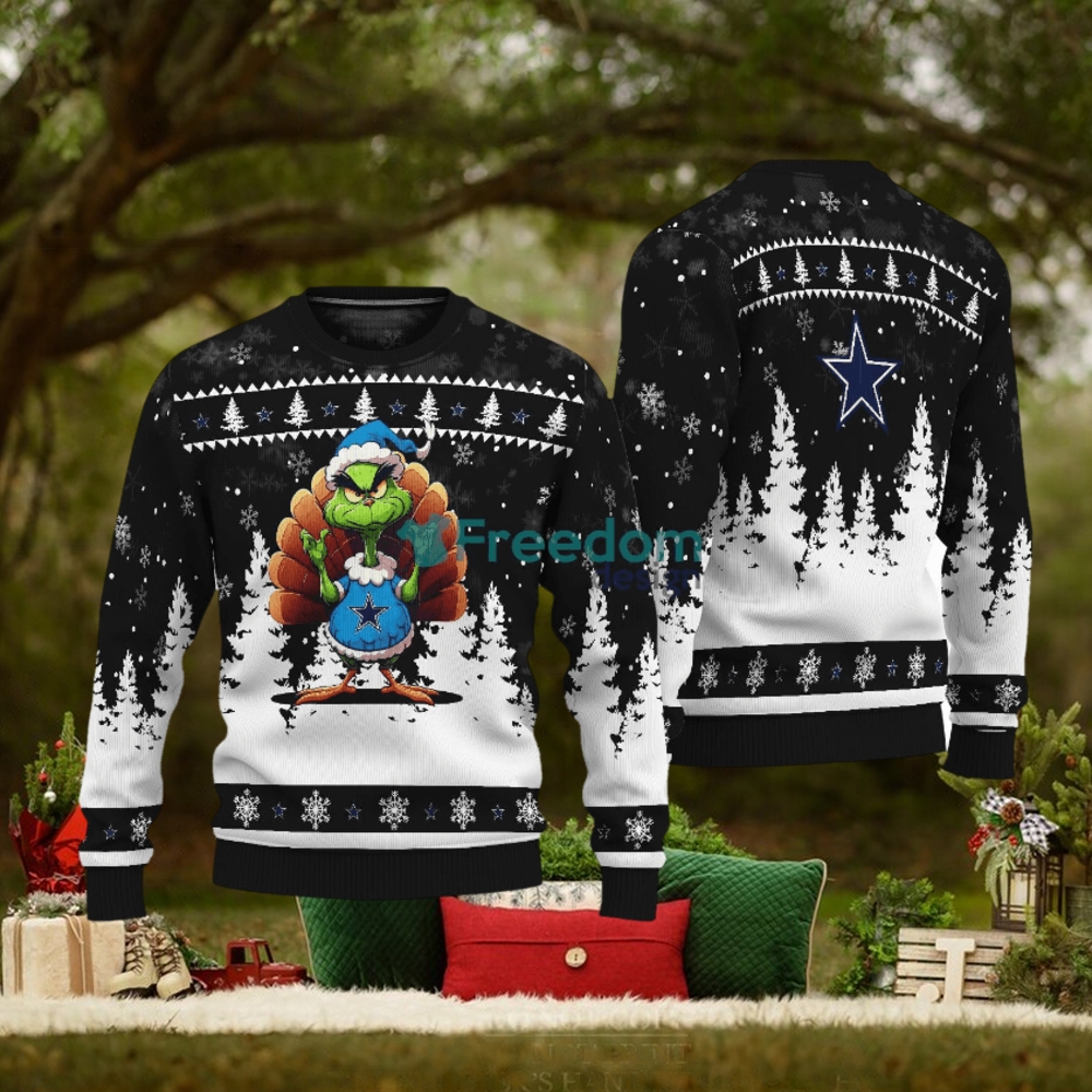 ()Dallas Cowboys Black Grinch Turkey Disguise Thankgiving Ugly Christmas 3D Sweater Gift For Men And Women,