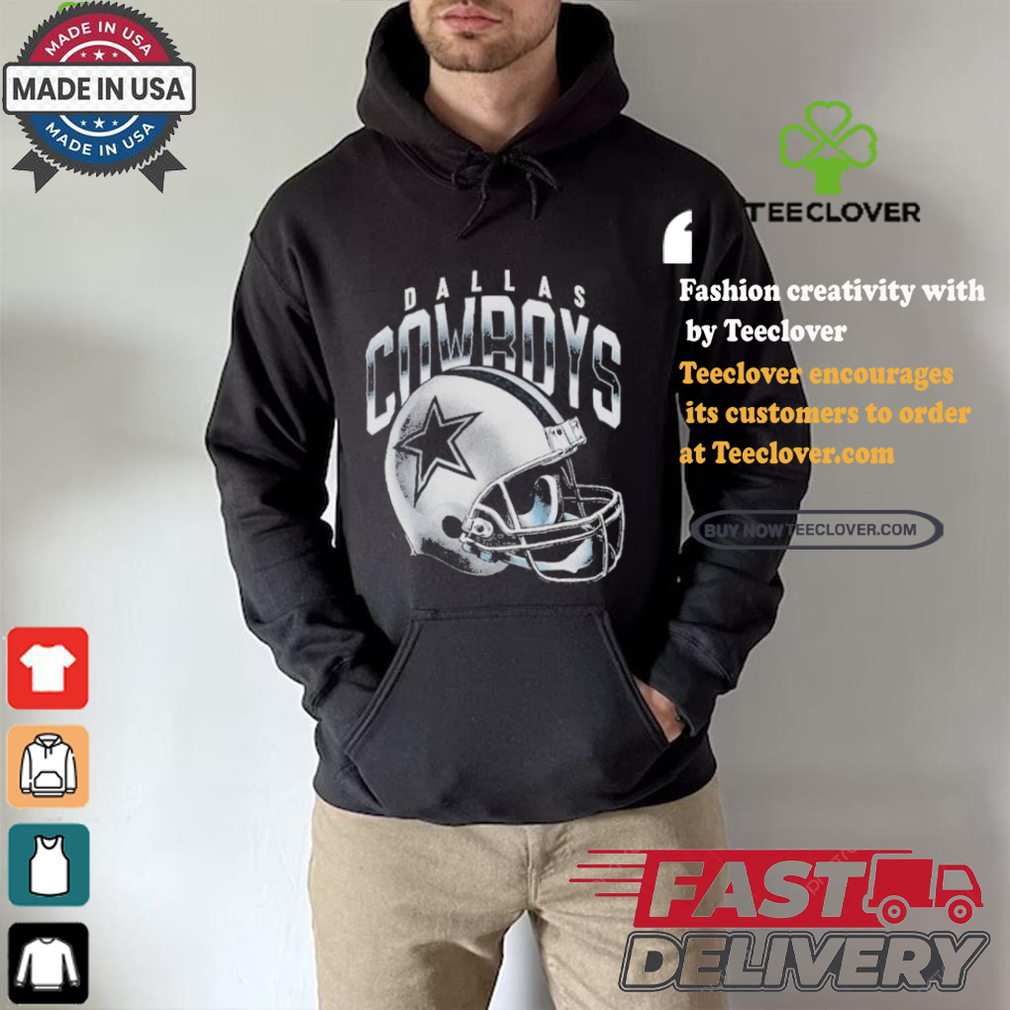 I was hoping Delores wouldn’t become a Dallas Cowboys Gradient Helmet T shirt aggressive rooster, as my recently deceased “Lance” had been, before passing on to “rooster heaven” with the assistance of a local coyote. The rooster I currently had, Gordon, was a sweet boy and was very happy to have Lance gone. Lance had been a fierce rooster who attacked literally every moving thing but the hens and me (displaying extreme good taste and discretion) and I was not prepared to live through as second several years of yet another “attack rooster”. Neither were the neighbor dogs. Nor were the neighbors, for that matter. I really didn’t think this would be a problem, as Delores was such a sweet rooster – showing no violence or aggression at all, and just wanted to sit on my shoulder (rather like a parrot) and look around. He’d snuggle against anyone’s neck or in anyone’s lap who would hold him and he adored being petted. Delores ran around digging for bugs in the lawn – but was just as happy sitting by the kitchen sink watching me trim vegetables or whatever. He made (as all my chickens did) a truce with the cats and was friends with the goats, horses and my other rooster, Gordon. They all slept together in the barn at night.