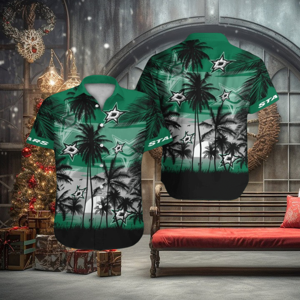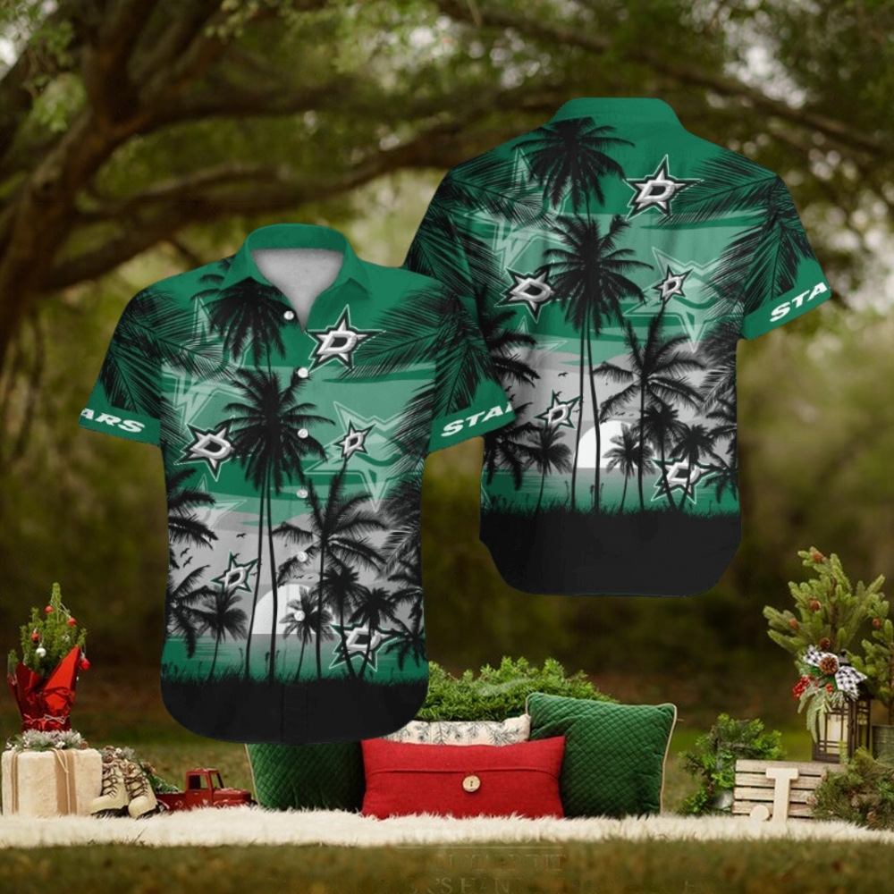 ()Dallas Stars Short Sleeve Button Up Tropical Hawaiian Shirt,