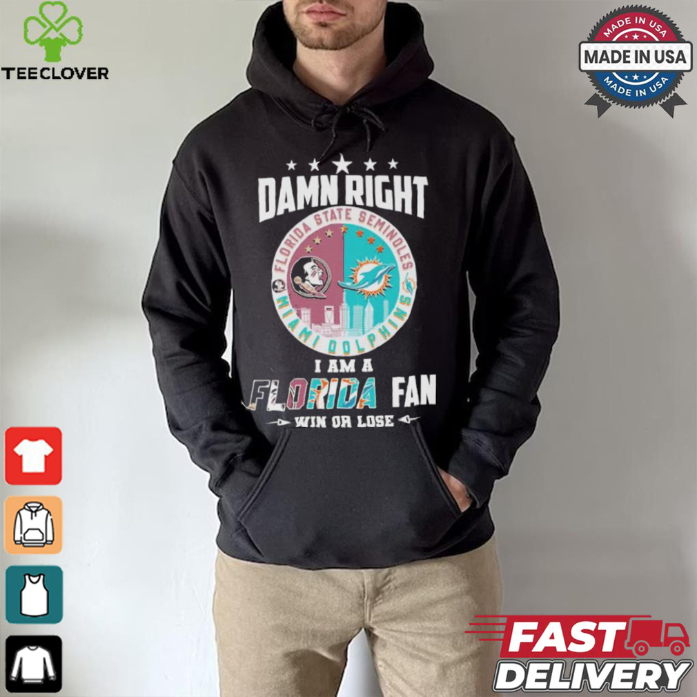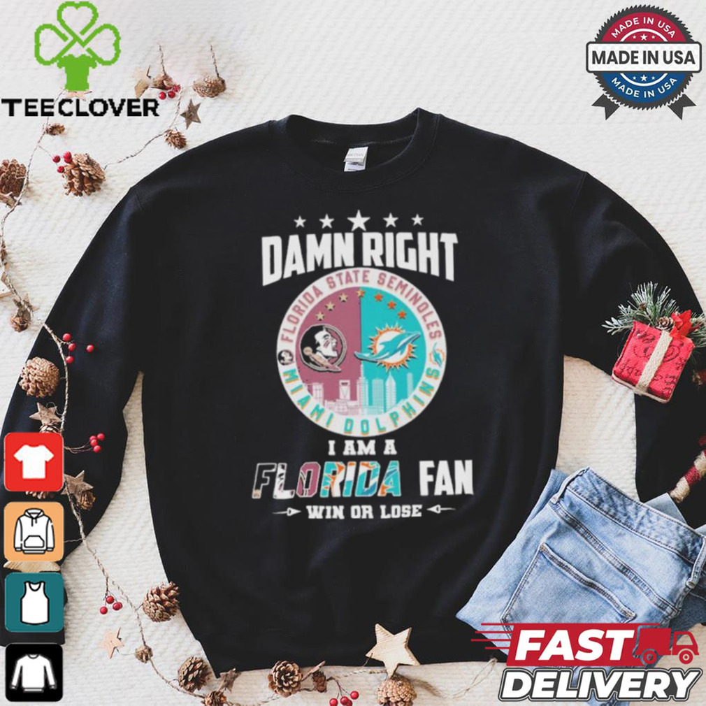 ()Damn Right I Am A Florida State Seminoles X Miami Dolphins Fan Win Or Lose Shirt