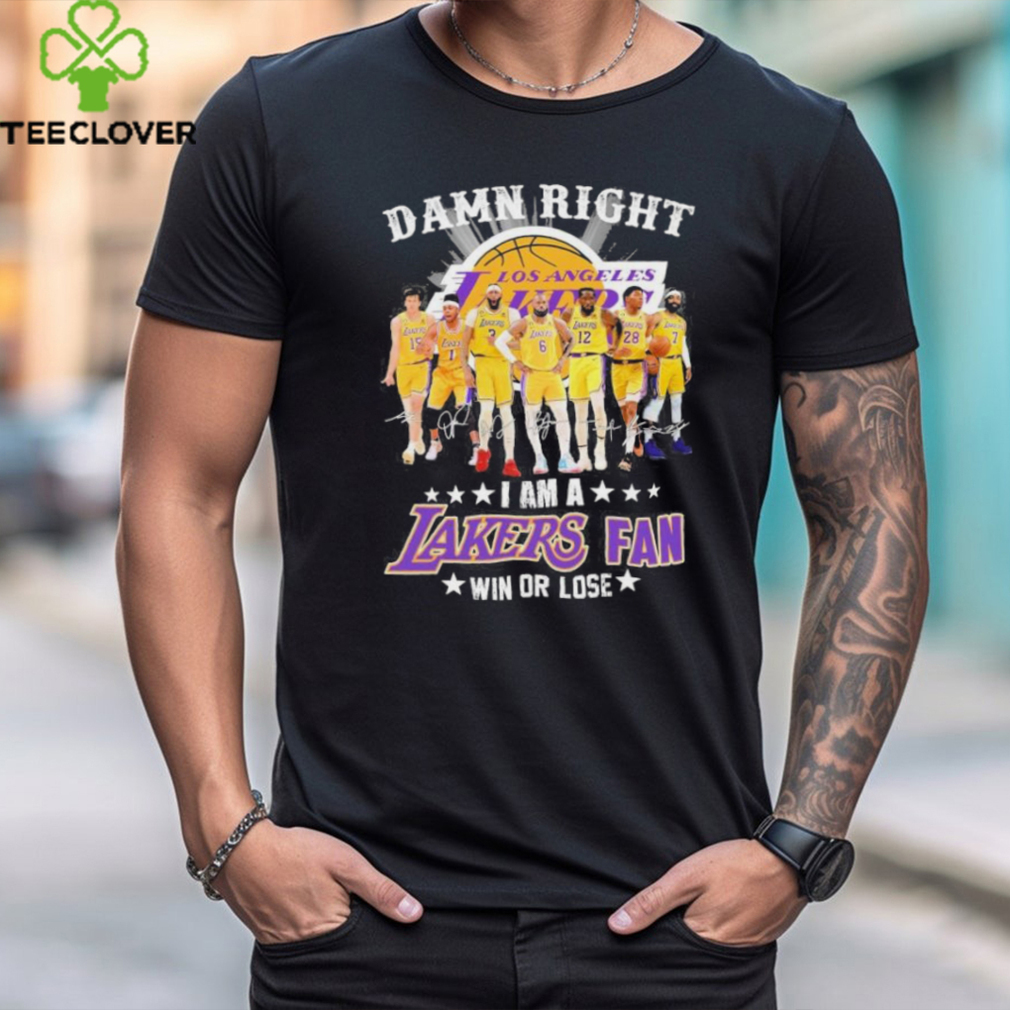 ()Damn Right I Am A Lakers Fan Win Or Lose 2024 Signatures Shirt