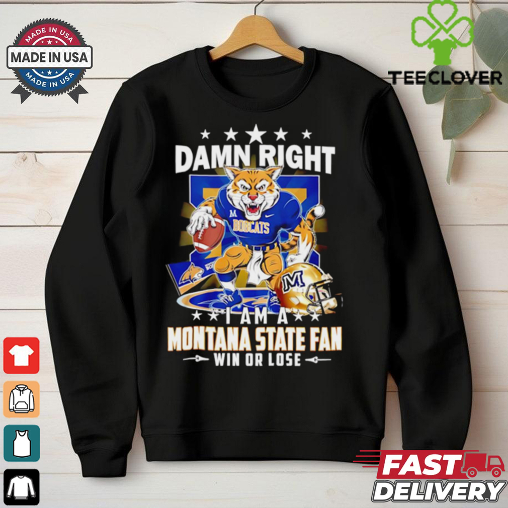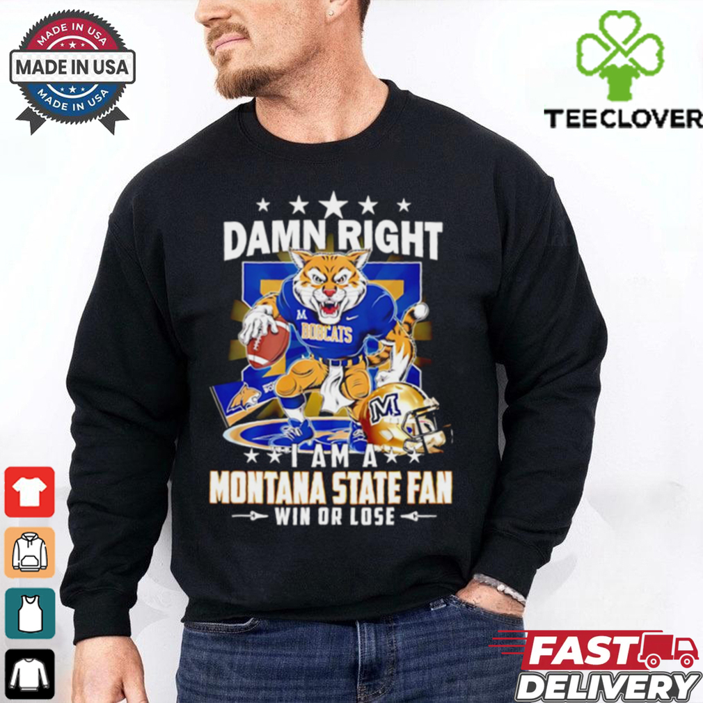 ()Damn right I am a Montana State fan win or lose mascot shirt hoodie, tank top, sweater and long sleeve t-shirt: best style for you