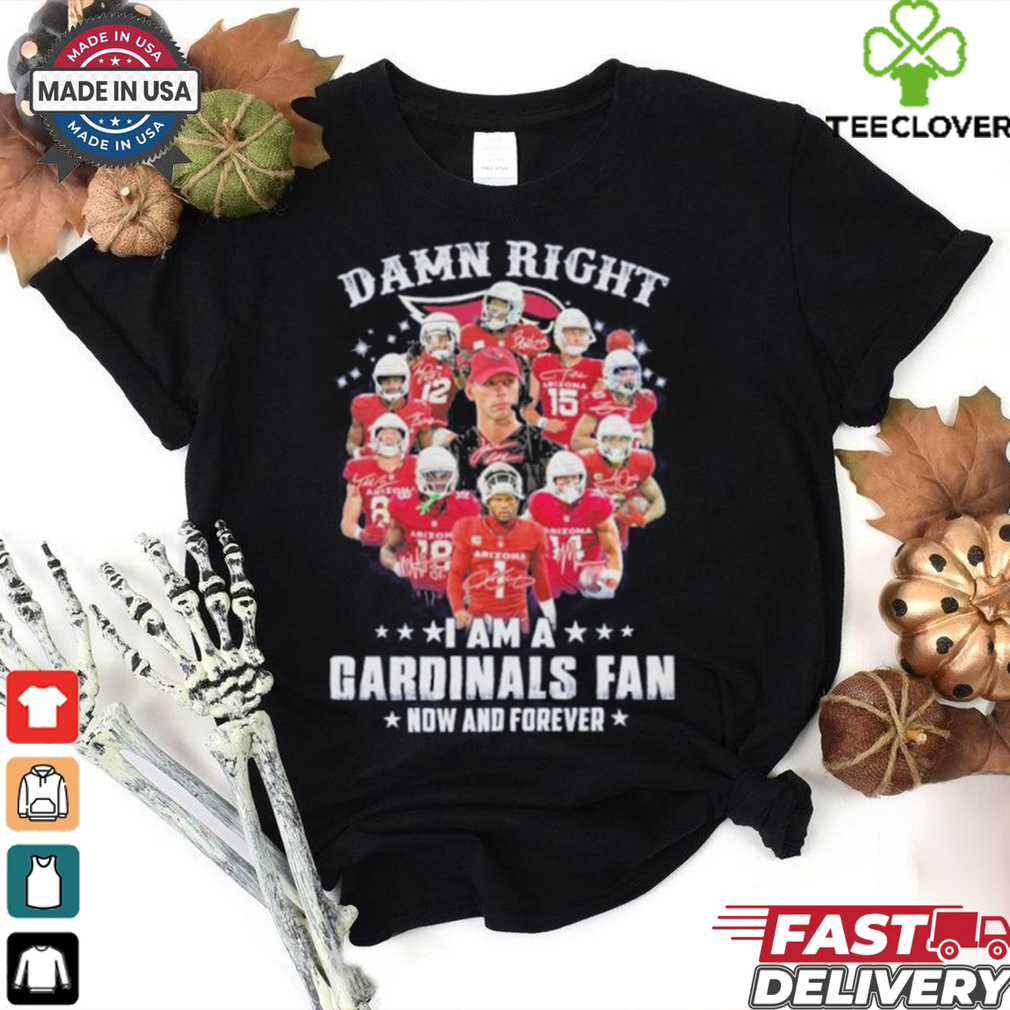 Well, while I was stuck in some officer’s office, I was allowed to make a Damn Right I’m A Arizona Cardinals 2024 Fan Now And Forever Signatues Shirt . My parents weren’t in town at the time and wouldn’t be for weeks (they traveled regularly to Hong Kong and China as they had business interests then). My girlfriend wasn’t answering the phone so that was a bust. So I called my best friend J, and explained the whole situation to him and he got to work to find out what was going on and to get his dad to vouch for me (his dad and I got along really well back then).