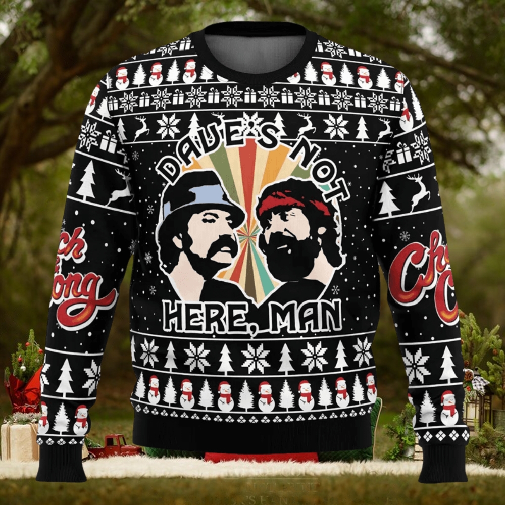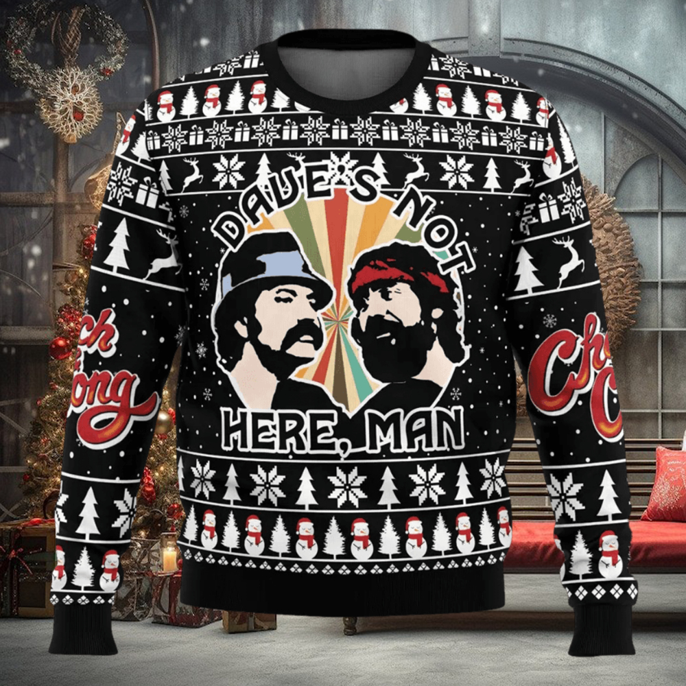 ()Dave’s Not Here Man Cheech and Chong Ugly Christmas Sweater,