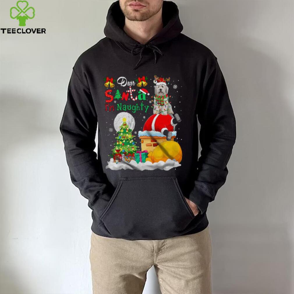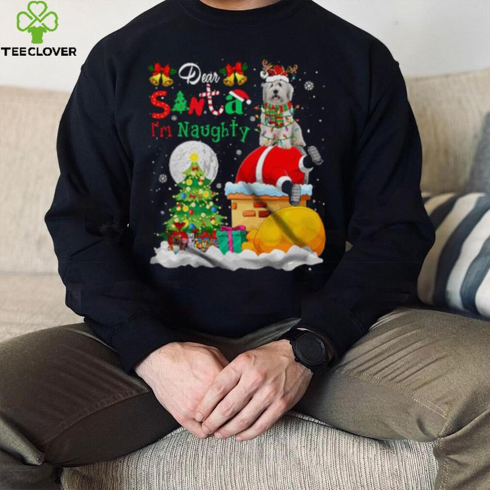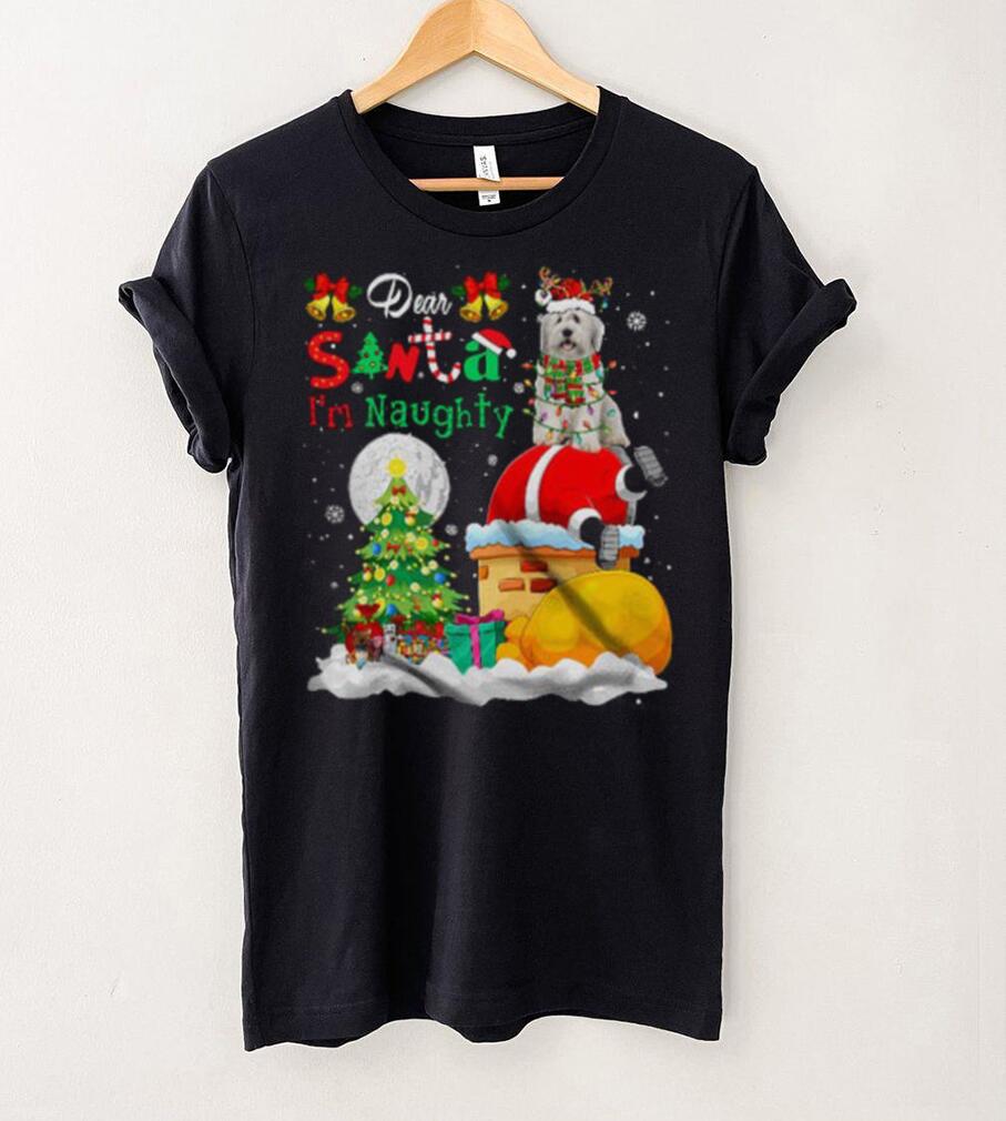 Dear Santa I’m Naughty Funny Christmas Lights Snow Bearded Collie Dog Santa Stuck In Chimney T Shirt