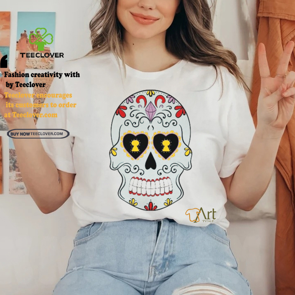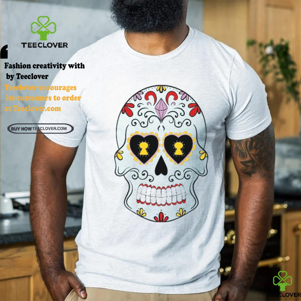 ()Deep Sky Blue Sugar Skull With Yellow Flowers T Shirt, Hoodie, Sweater, Vneck, Unisex and T-shirt