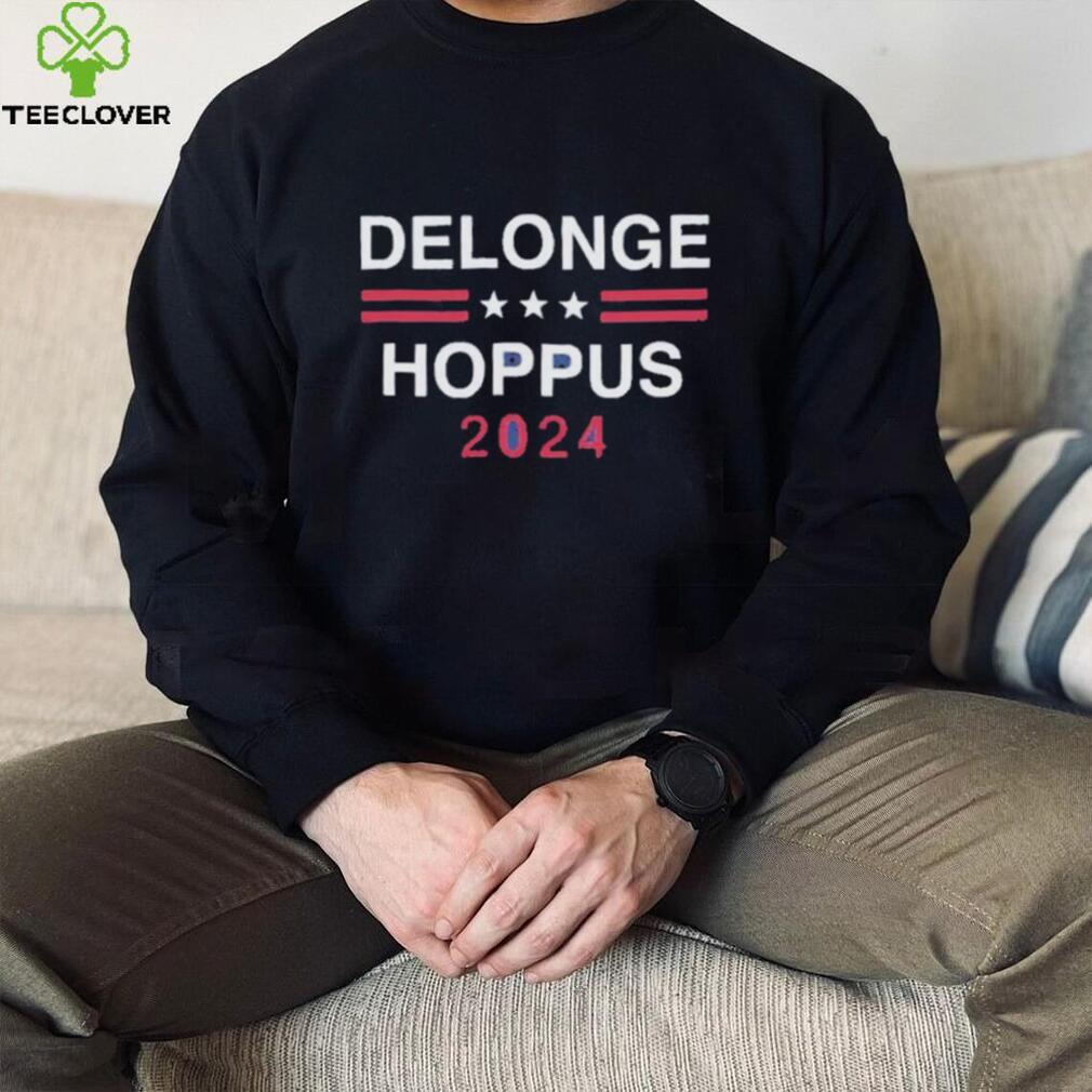 I was hoping Delores wouldn’t become a Delonge Hoppus 2024 Campaign Shirt aggressive rooster, as my recently deceased “Lance” had been, before passing on to “rooster heaven” with the assistance of a local coyote. The rooster I currently had, Gordon, was a sweet boy and was very happy to have Lance gone. Lance had been a fierce rooster who attacked literally every moving thing but the hens and me (displaying extreme good taste and discretion) and I was not prepared to live through as second several years of yet another “attack rooster”. Neither were the neighbor dogs. Nor were the neighbors, for that matter. I really didn’t think this would be a problem, as Delores was such a sweet rooster – showing no violence or aggression at all, and just wanted to sit on my shoulder (rather like a parrot) and look around. He’d snuggle against anyone’s neck or in anyone’s lap who would hold him and he adored being petted. Delores ran around digging for bugs in the lawn – but was just as happy sitting by the kitchen sink watching me trim vegetables or whatever. He made (as all my chickens did) a truce with the cats and was friends with the goats, horses and my other rooster, Gordon. They all slept together in the barn at night.
