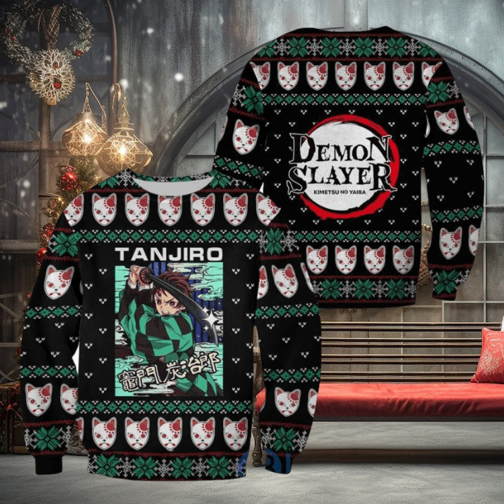 Best Demon Slayer Anime Tanjiro Kamado Knitting Christmas All Over Printed 3D Shirt