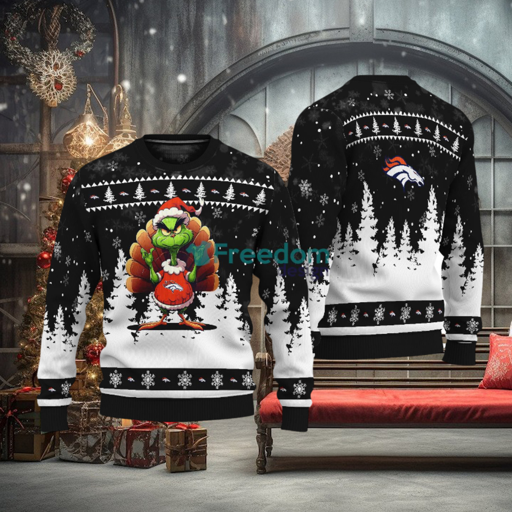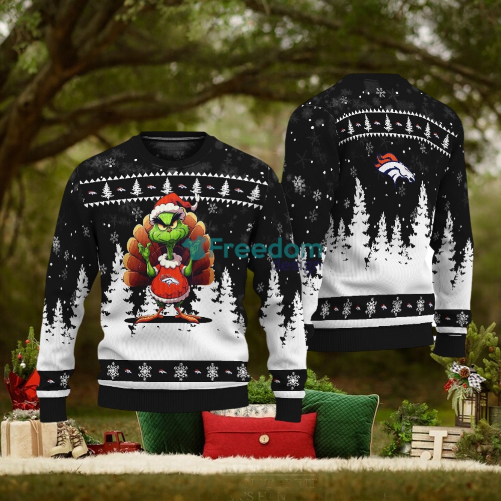 ()Denver Broncos Black Grinch Turkey Disguise Thankgiving Ugly Christmas Sweater Gift Holidays,