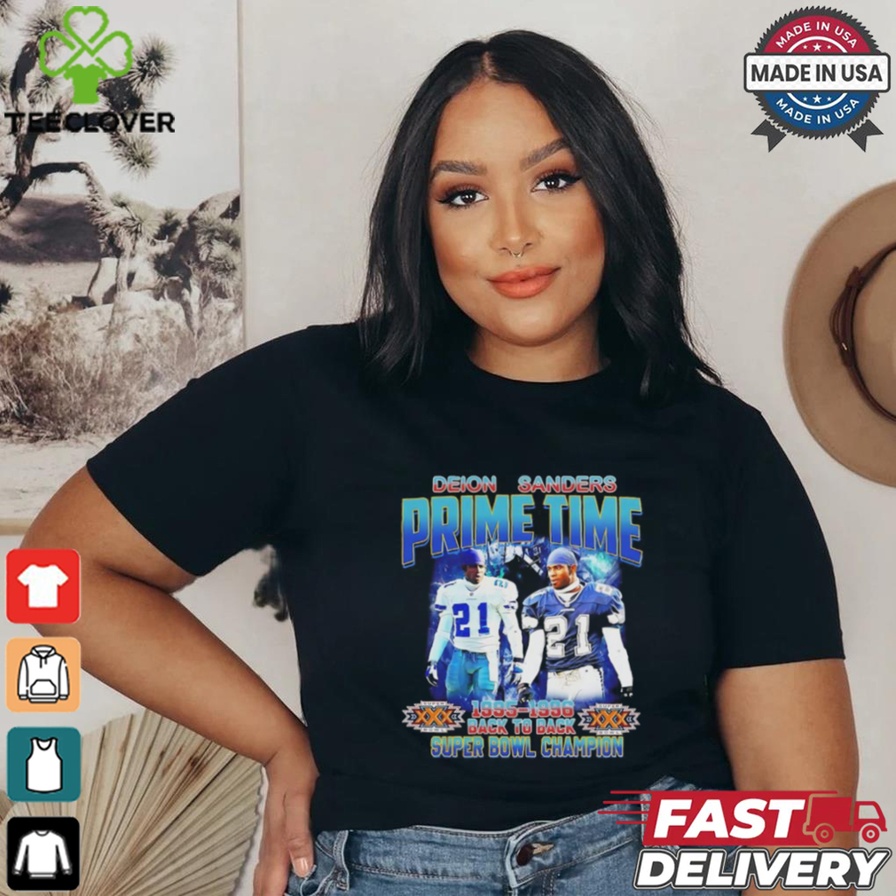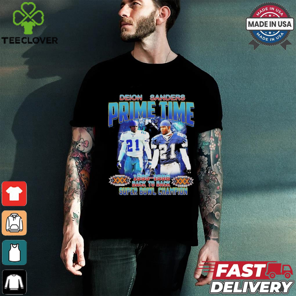 ()Deon Sanders Prime Time Back to Back Champ vintage shirt. Categories of this T-shirt is teejeep, Deon Sanders Prime Time Back to Back Champ vintage shirt from Dadyshirt β Unique designs β Large assortment β Comfortable β High-quality β Easy to care for β Available in a range of colours and styles for men, women β Shop now β