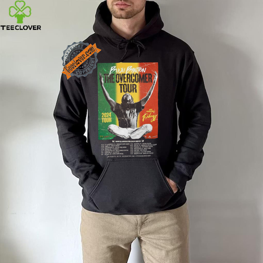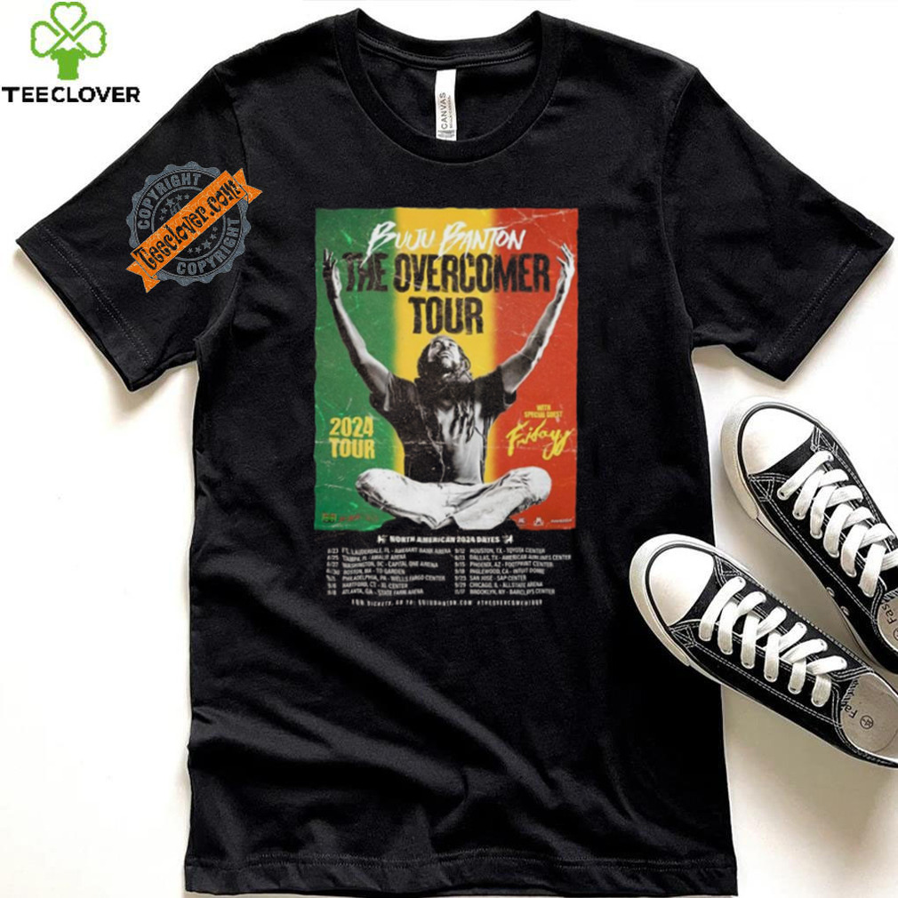 My grandfather was fond of Design Buju Banton Concert 2024 Overcomer Tour Poster Shirt. When diabetes affected his legs and made him immobile, he continued to whistle. When glaucoma affected his eyes and he lost his eyesight, he continued to whistle. As someone in her early 20s, I found my granddad’s immense pleasure from life overwhelming and infectious. Here was a person who was losing all his senses, yet was gracious enough to utilize and maximize his happiness from the senses he still retained. Try whistling. It improves your lung capacity and will send more oxygen into your bloodstream, making you feel better instantly.Try cooking. I hear it is quite therapeutic when used to counter depression. Try duck meat (if you eat non-veg). If you have trouble sleeping, I read that tryptophan (an amino acid in duck meat) puts you to sleep instantly. Alternatives: try honey with milk before sleeping.
