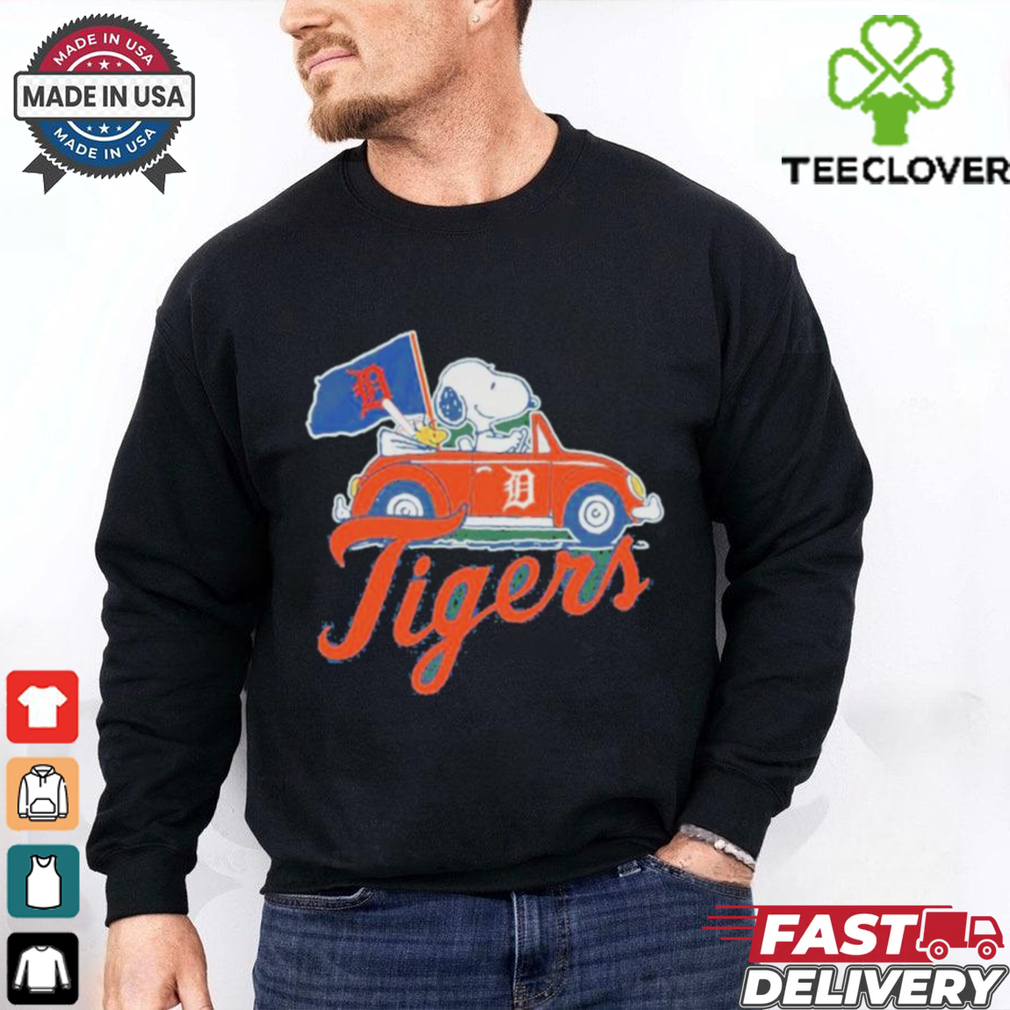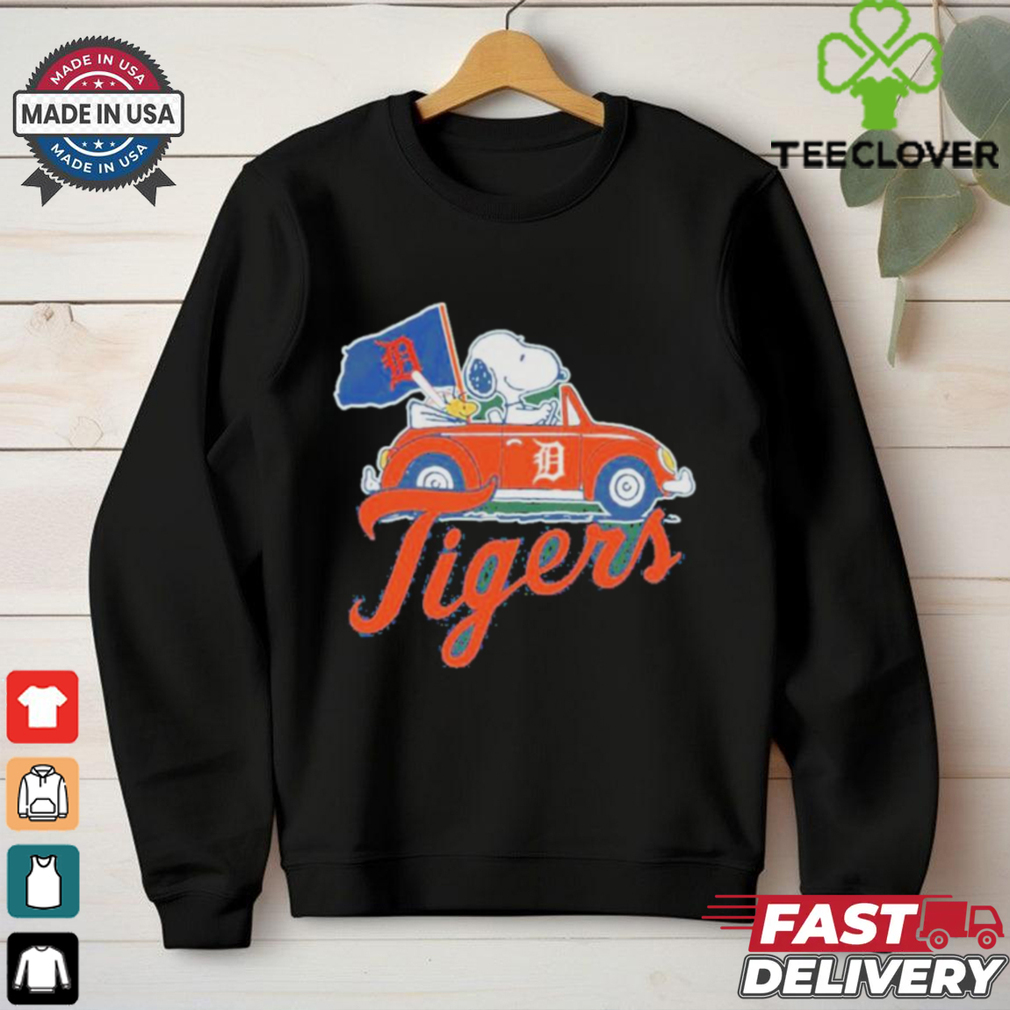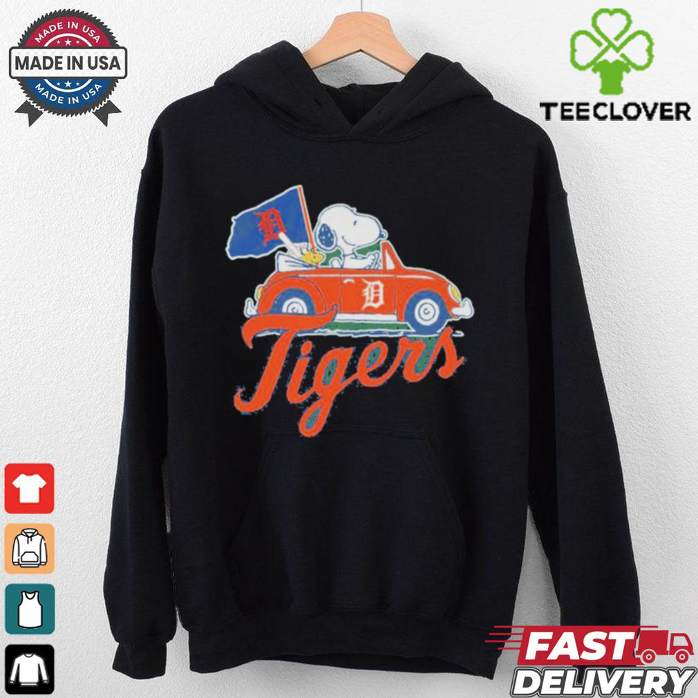 ()Detroit Tigers Snoopy And Woodstock Driving Car Flag Shirt hoodie, tank top, sweater and long sleeve t-shirt: best style for you