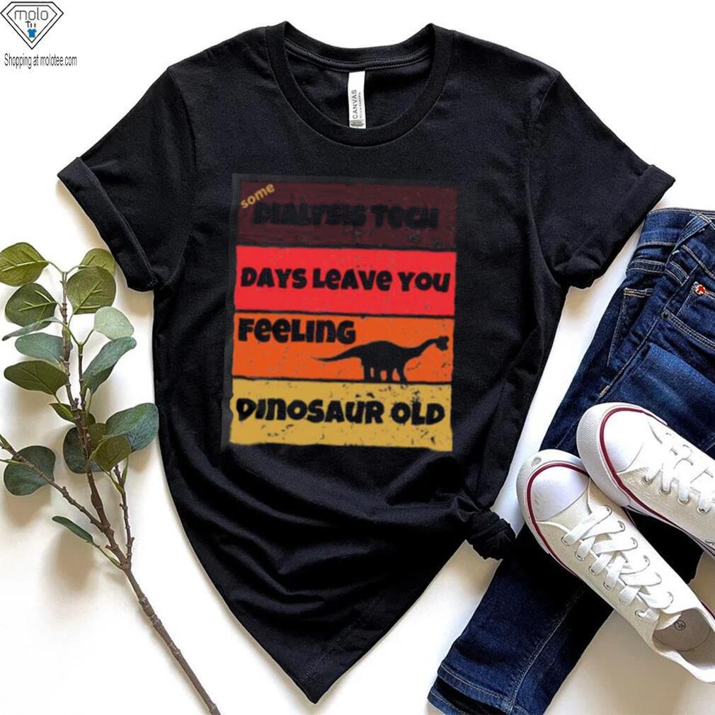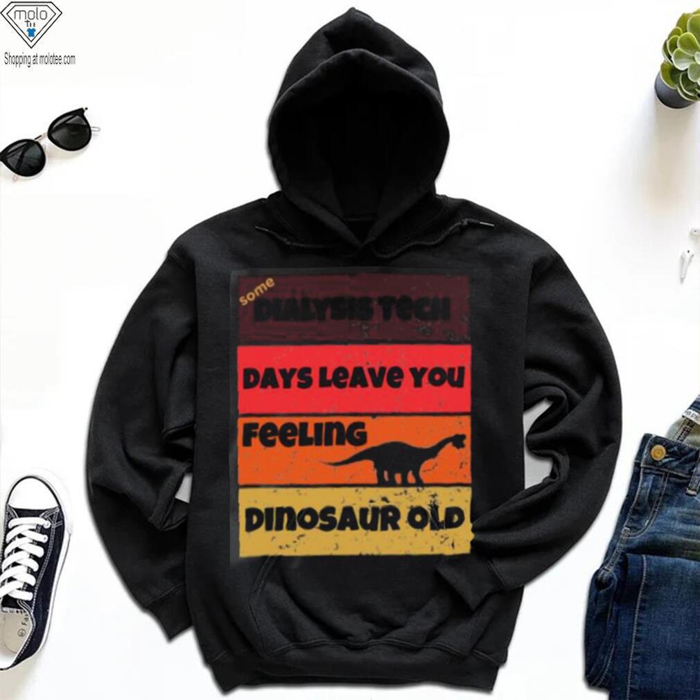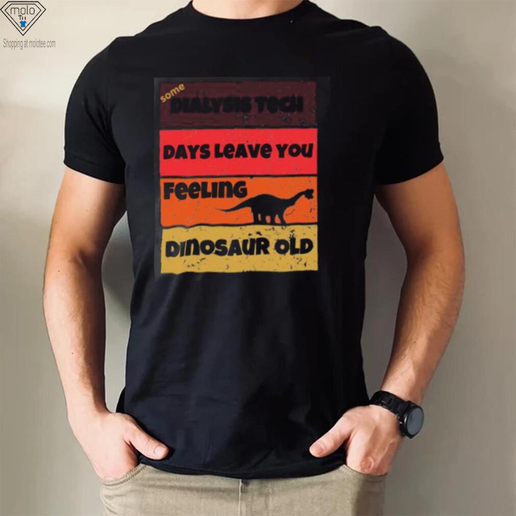 “The Fugitive” is an older man, Ben who plays with the local kids and Dialysis Tech Days Leave You Dinosaur Old Birthday Idea Retro T Shirt almost magical powers. Old Ben’s favorite of the children is Jenny. He carries Jenny home (she walks with a leg brace), where she lives with her abrasively unsympathetic aunt, Agnes Gann. As they approach the row house, Ben causes his roller skates to de-materialize. This phenomenon is observed by two men who are watching the house from across the street. They enter the apartment building, identify themselves as police, and question Agnes about Ben. Jenny overhears the conversation and limps upstairs to Old Ben’s apartment to warn him. Old Ben takes on the form of a mouse, fooling the men into thinking he has left his apartment.Jenny takes the “mouse” back to her room. Old Ben tells Jenny that he is an alien from another planet, and that his appearance is only a disguise, as he is a fugitive from justice. Old Ben says he must flee to another planet, but before departing he uses a strange device to heal Jenny’s leg. The two strangers run into Jenny walking down the stairs without her brace.