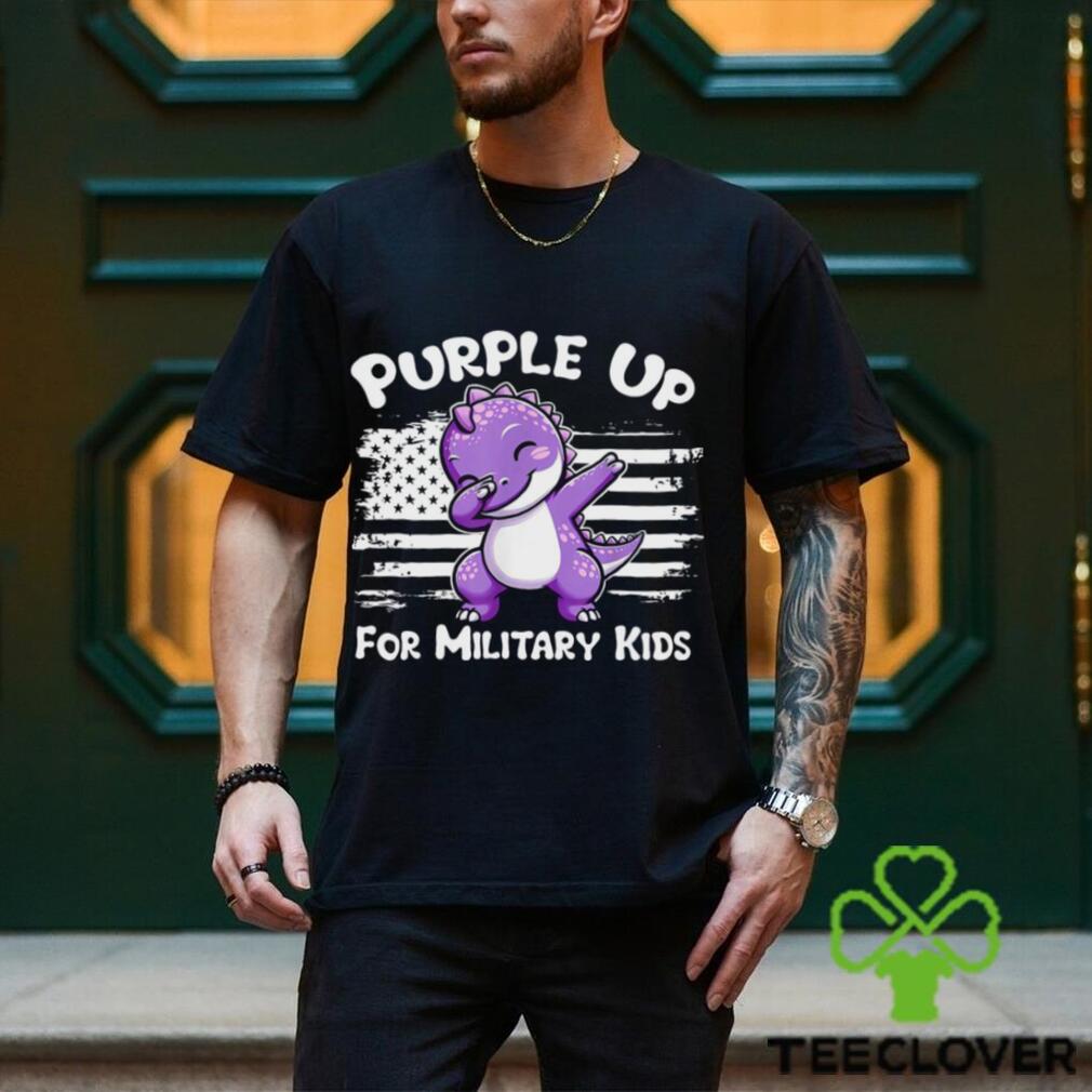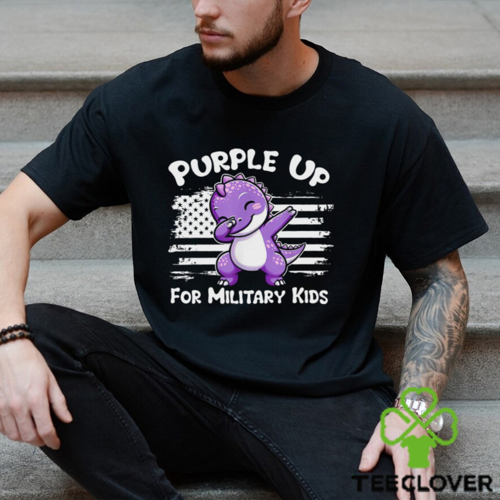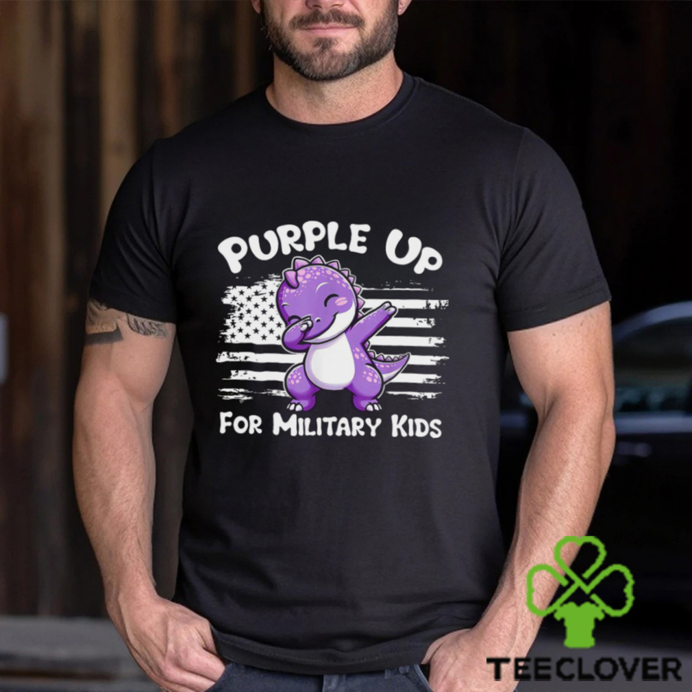 Dinosaur purple up for military kids USA flag shirt
