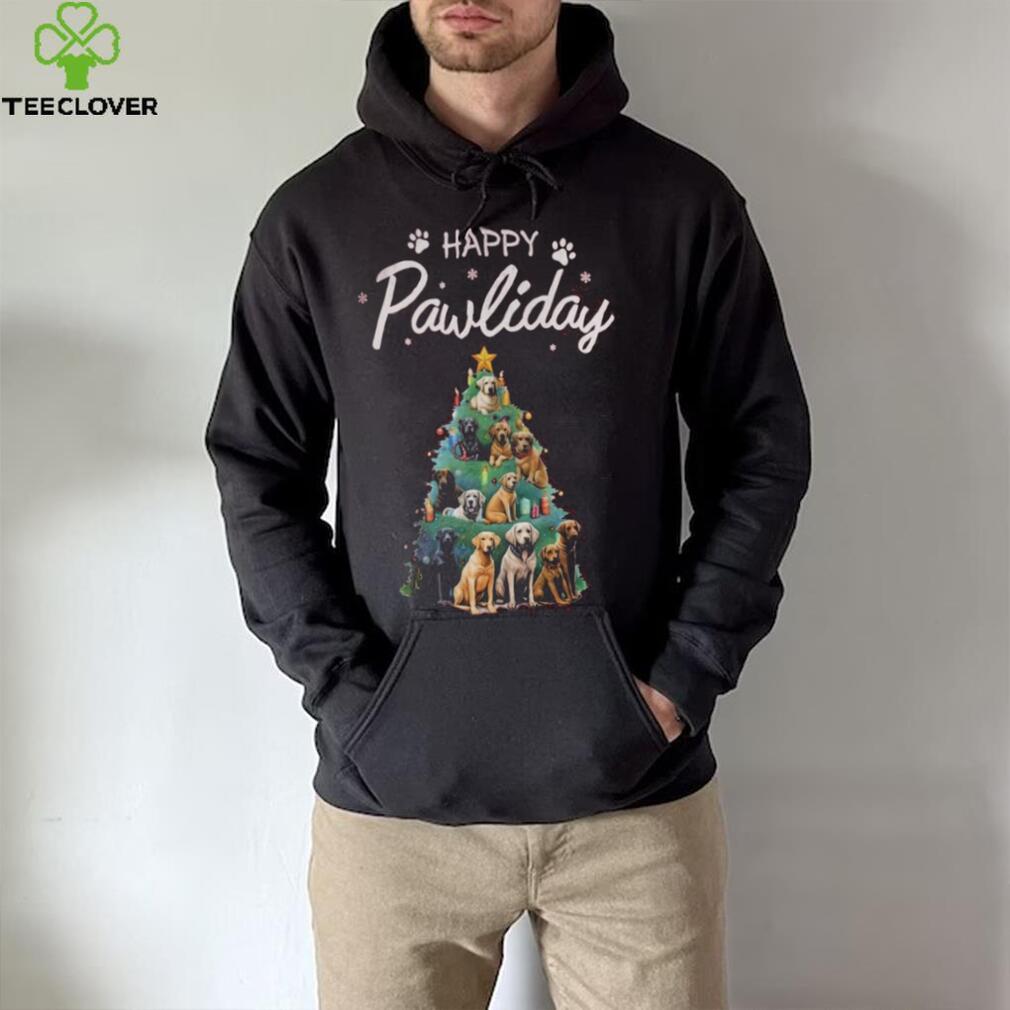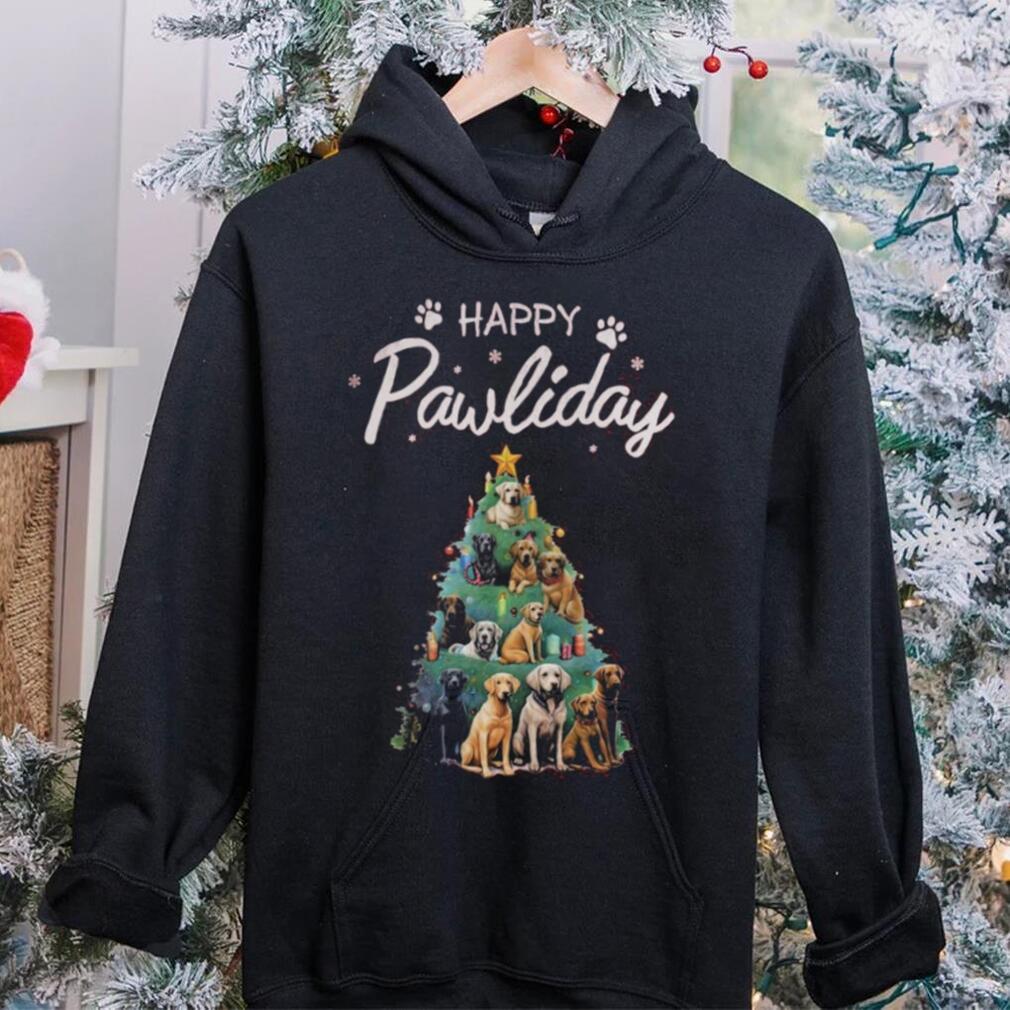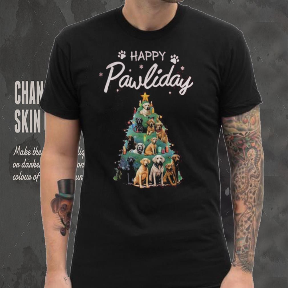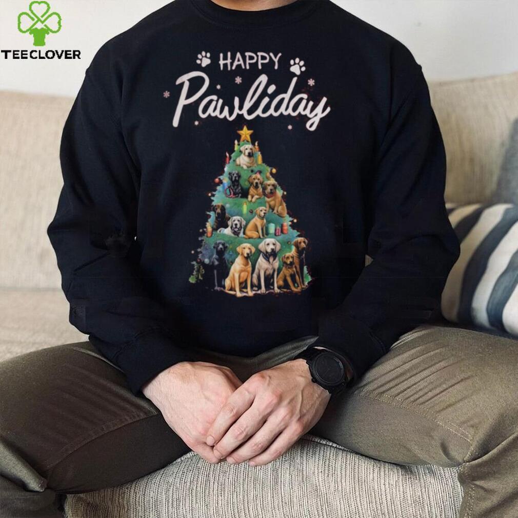 When I was quite small, my family were Jehovah’s Witnesses. My big brothers remembered their Catholic beginnings, they remembered magical Christmases. My little brother and I did not, we’d never been Catholic yet. We used to get very sad that all of our friends had lovely Christmas or Hanukkah, and we did not. We’d pout. My big brothers tried their best to console us. Our best friends lived across the Dog Paw Tree Christmas Happy Holiday Shirt . Their dad was not home much, but he was a very stern man. He had quite the temper (when we grew up, we realized that he was always drunk, but when we were small he was just scary). He had a Doberman called Rex who we were all also terrified of. One year, I’m probably four or five, we’re sitting in my brothers’ room wistfully staring out the window at our friends playing with their new toys, wearing their Christmas sweaters, all that. The oldest two brothers, maybe trying to console us, convince us that we do not want Christmas at all. They tell us that Scary Dad is Santa Claus. They tell us that Rex the Doberman is actually Rudolph. Would we really want Rex landing on our roof? Would we really want Scary Dad judging whether we were naughty or nice, and sneaking into our house while we slept?