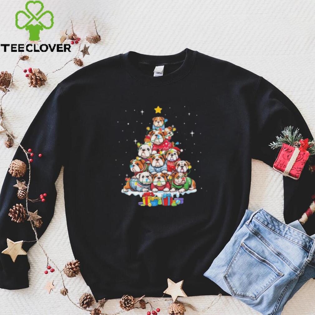 Dogs Bulldog Collie pine tree merry christmas shirt