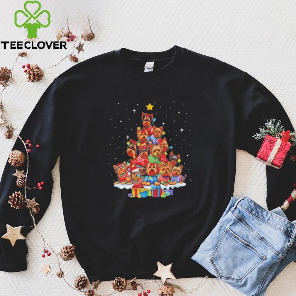 Dogs Yorkshire santa pine tree merry christmas shirt