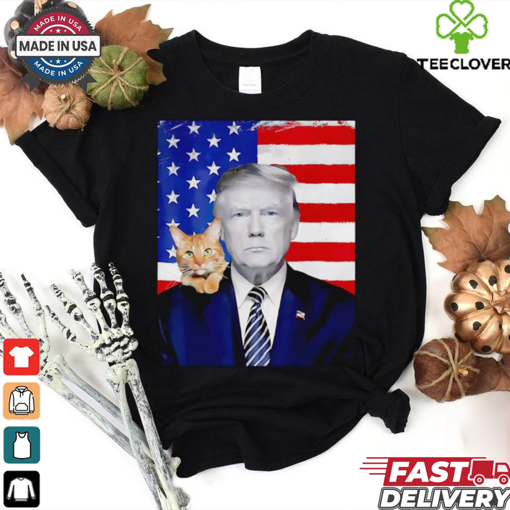For regular wear its best suited to use T-Shirt bras as they are Donald Trump and Cat Political USA flag election 2024 shirt made of cotton which is very comfortable for extended use and is also seamless thus minimizing bra outline show-through. If you are on the heavier side, say cup size C and upwards its advisable to go for full-figure bras with broad straps as it distributes the weight evenly making it much more comfortable.I am pretty sure by now you know where I am going with this. After some time, he barfed all over me. The most stinky and gross throw up all over me everywhere in my tshirt, my bra.