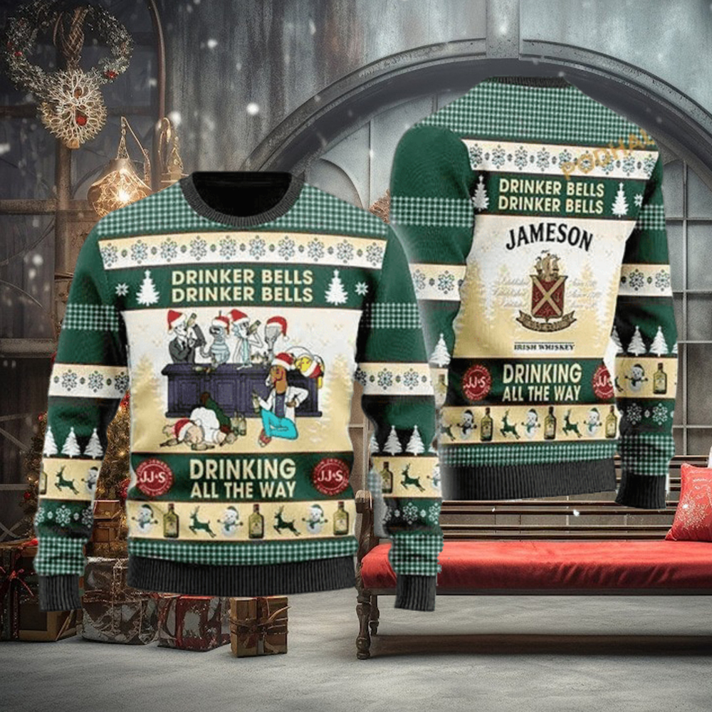 ()Drinker Bells Jameson Irish Whiskey Xmas 3D Matching Christmas Sweater,