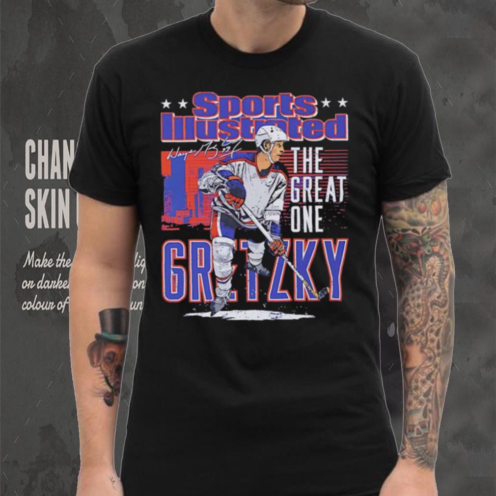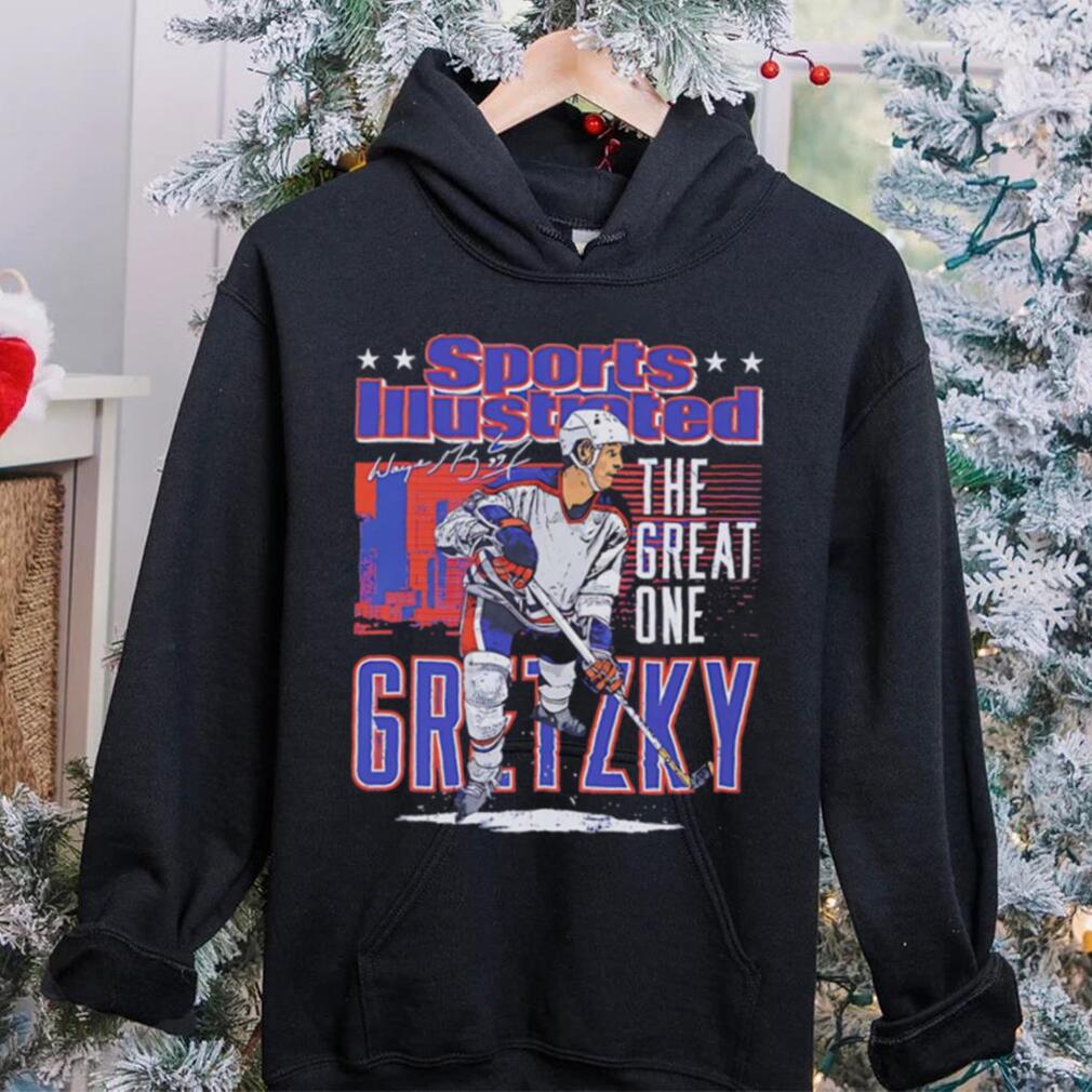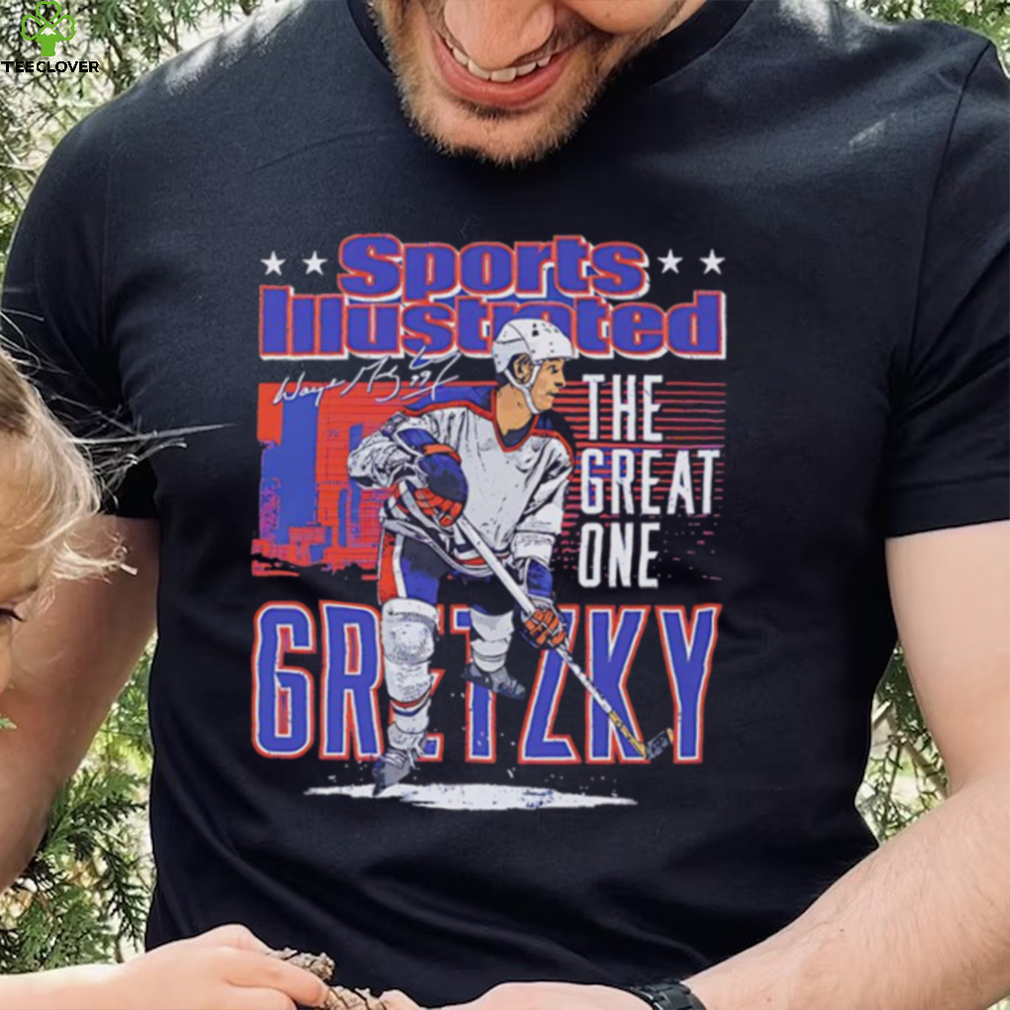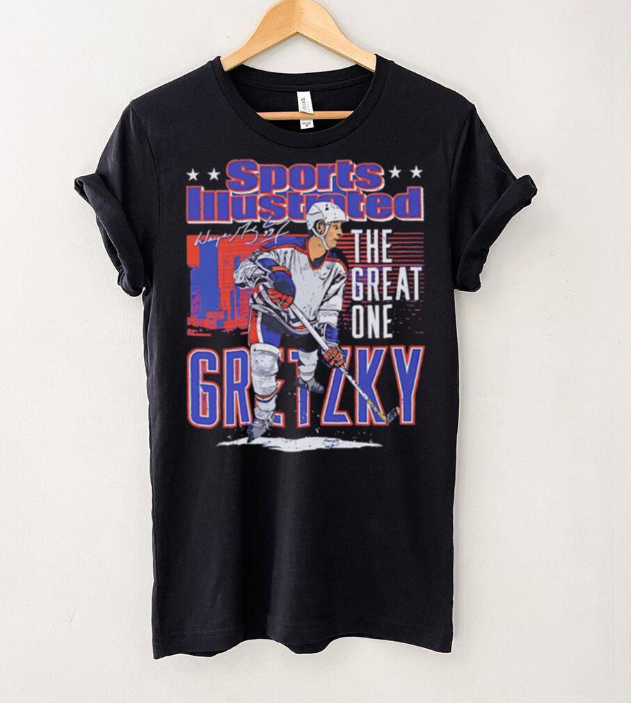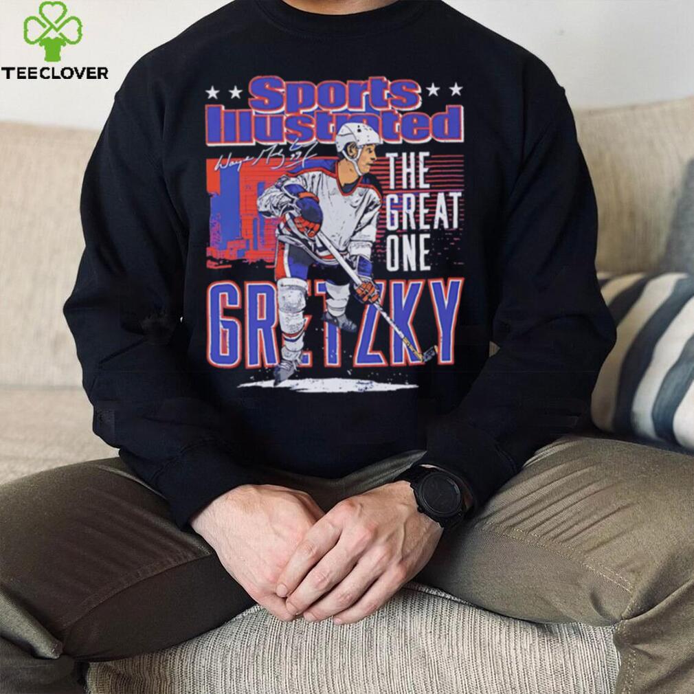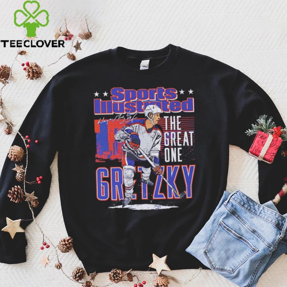 Edmonton Oilers Wayne Gretzky the great one sports illustrated and Edmonton skyline signature shirt