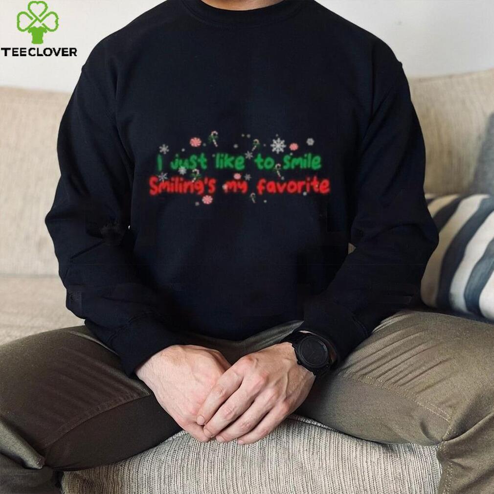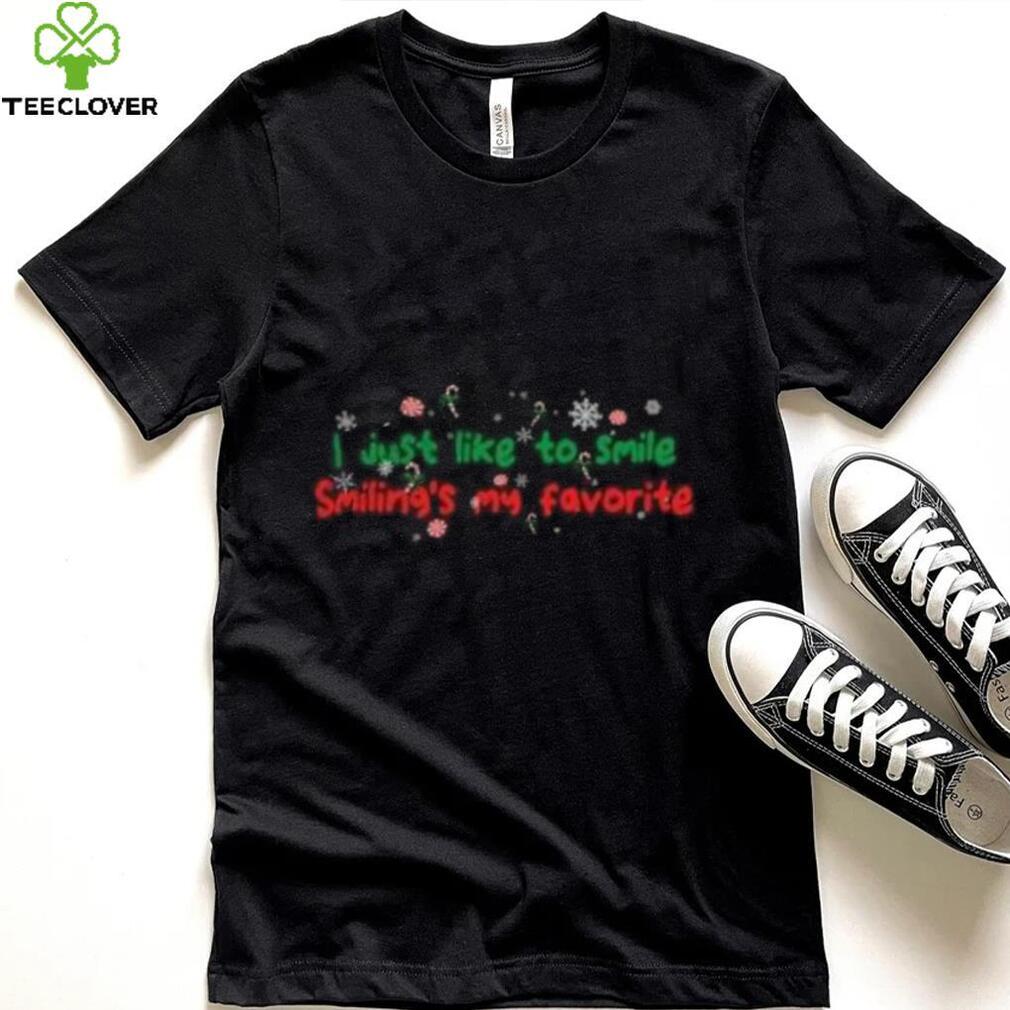 At that point I had a steady girl-friend, but also a Elf I just like to smile smiling’s my favorite icons Christmas T Shirt good friend Robin. I was suppose to meet my girl-friend on Christmas Eve, but around 7:00 PM my friend Robin calls me up and tells me her mom has been bummed about about Christmas and there are no decorations at their home. She asked me, “Will you go get a Christmas tree with me?” That put me in a real dilemma with my girl-friend, but sometimes you have to do the right thing…so I called my girl-friend and told her what I had to do, she was cool. My friend Robin had lost her father when she was very young, and her mother never remarried her entire life. I sort of knew why because one day while over Robin’s house, she had a box of letters that her dad had written to her mom while he was a soldier, and we read them together…very old letters, but expressed who he was.