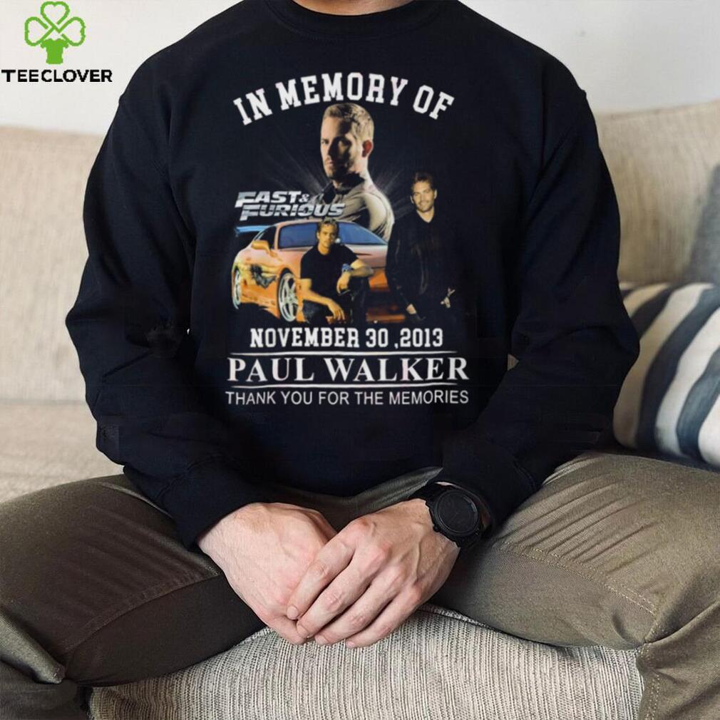 (Fast & Furious November 30 ,2013 Paul Walker Thank You For The Memories T Shirt, sweater)Categories Holidays, Fathers Day, Mothers Day of this menβs, womenβs t-shirt, hoodie, sweatshirt and plus size, all sizes from Dad, Family, Liberals. This t-shirt has all kinds of colors black, white, navy, red that is very suitable for trending or holidays for Fast & Furious November 30 ,2013 Paul Walker Thank You For The Memories T Shirt