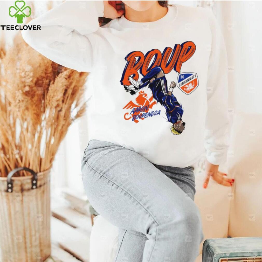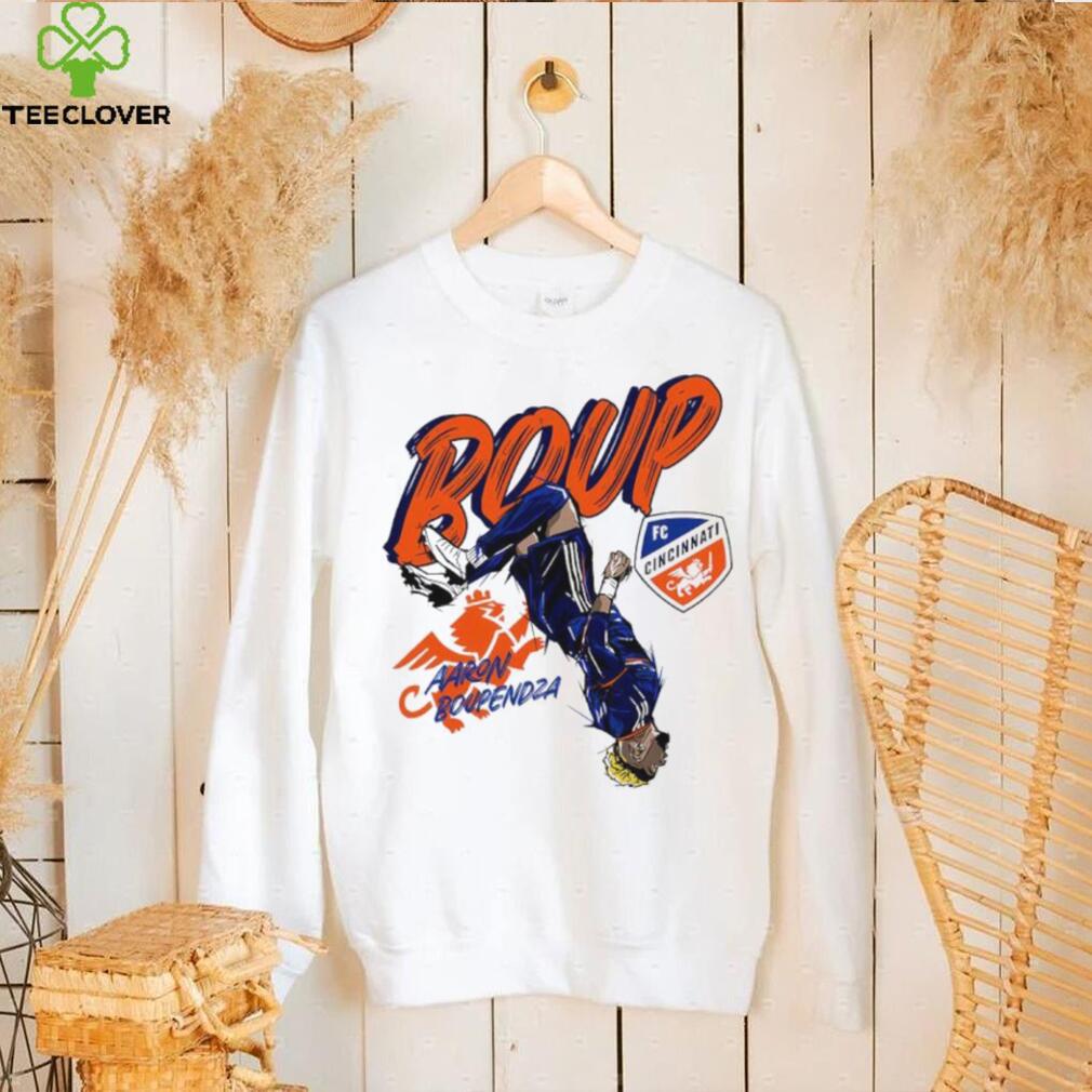 The FC Cincinnati Aaron Boupendza boup flip shirt to answering your question is experience. We exist to experience; we know we exist because we experience our own existence. The second key is observation. We observe our existence, our experience. We witness, record, and reflect upon our experience. The third key is intention. From observations of our experiences, we build a theory of “reality”, and make choices to act or not act based on that theory. We form an intention to create a specific experience that we want to observe. Now we have a sufficient solution to the problem. Experience, observation, and intention together create reality. They cannot exist without each other. None is more fundamental than the other, and none can be removed without destroying the others. Experience, observation, and intention: the grand experiment. We exist to try things, experience them, and observe the result. There is no meaning beyond that; when we are gone, all those things are gone too. We should use the little time we have to make as many experiments as possible. We have been blessed with the opportunity to experience, observe, and intend, and we should not waste it.