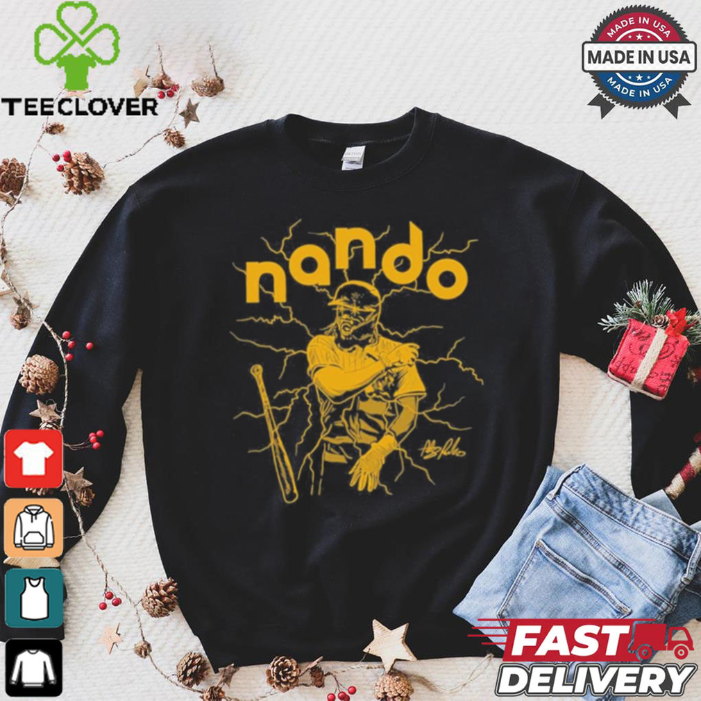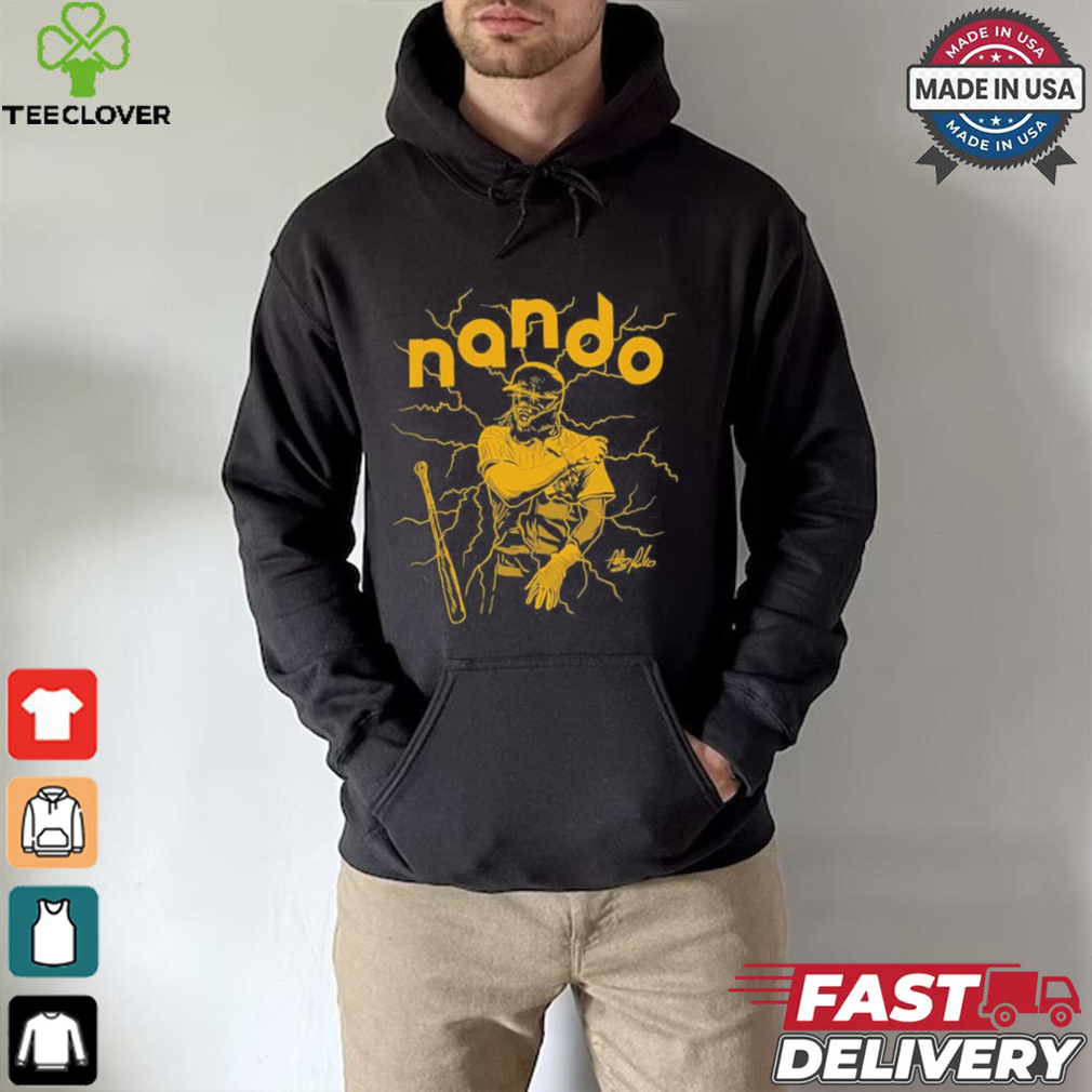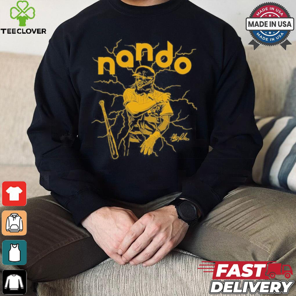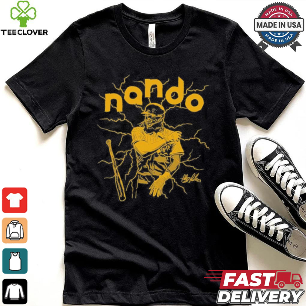 I picked up Robin and it was a very cold night, snow was on the Fernando Tatis Jr Nando Shirt , the streets were empty of cars and people… as we set-out to find the Christmas tree. We spotted a lot, I did an illegal u-turn in my VW bug and drove up to the empty Christmas tree parking lot. The owner of the Christmas tree lot had abandoned the place and the fence gates were wide open. So we parked the car, and spent the next 30 minutes sorting through trees. Robin, was in the moment and we must have looked over at least thirty trees left behind for our pickings. I was coaching her in consideration how big of a Christmas tree we could actually fit into a VW Bug. We finally settled on a smaller Christmas tree that was propped up on a wooden stand and looked a little weak in the branch department, but not quite Charlie Brown style. I picked up the tree and moved it over to the VW bug, we had to drop the back seats, and aligned the tree between the two front seats…hey it smelled great in the car.
