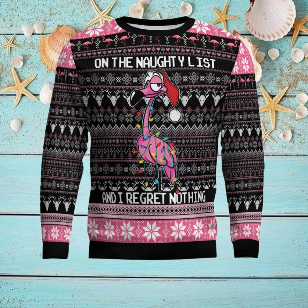 ()Flamingo Naughty List Ugly Christmas Sweater,