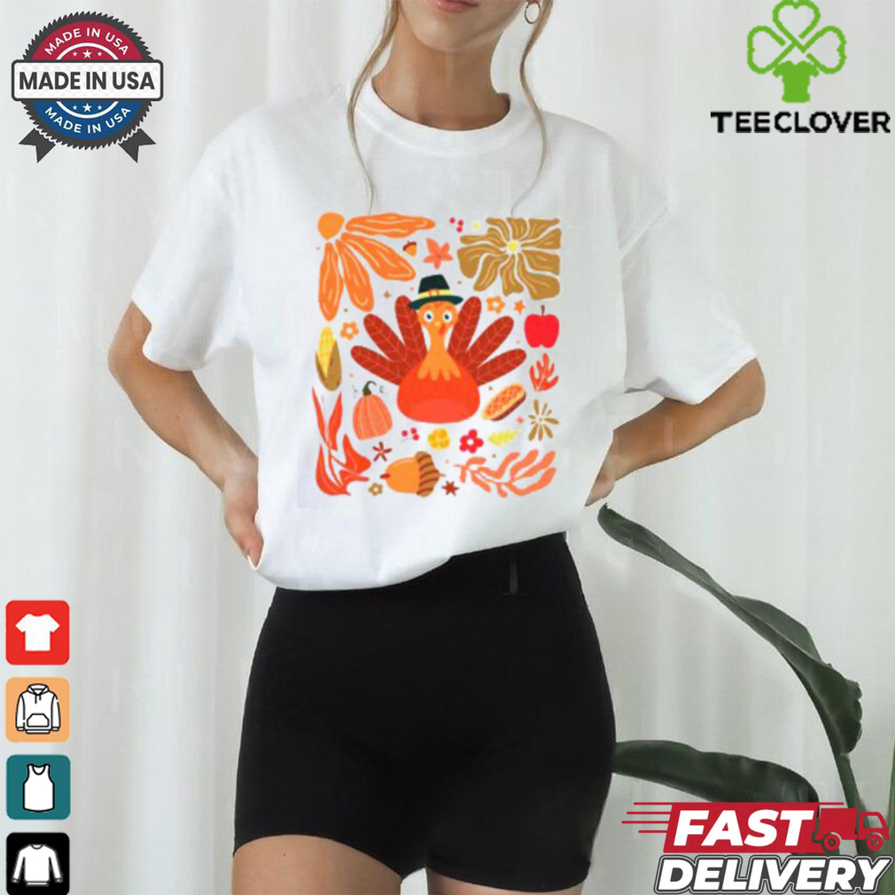 There are certain basic wardrobe must-haves for Floral Turkey Thanksgiving Dinner Fall Season T shirt – A plain white shirt/tshirt, a classic blue jeans, black trousers, a formal pencil skirt, a little black dress, leggings, a colourful scarf to go with everything, a pair of sneakers, a pair of black pumps and to top it all, a statement jewellery piece.In Indian wear it’s always kurti and leggings that’s most comfortable . You can look for high neck ,collared neck or boat neck and avoid wearing dupatta with it . You can also team up ur kurti with palazzos. They are super comfy .