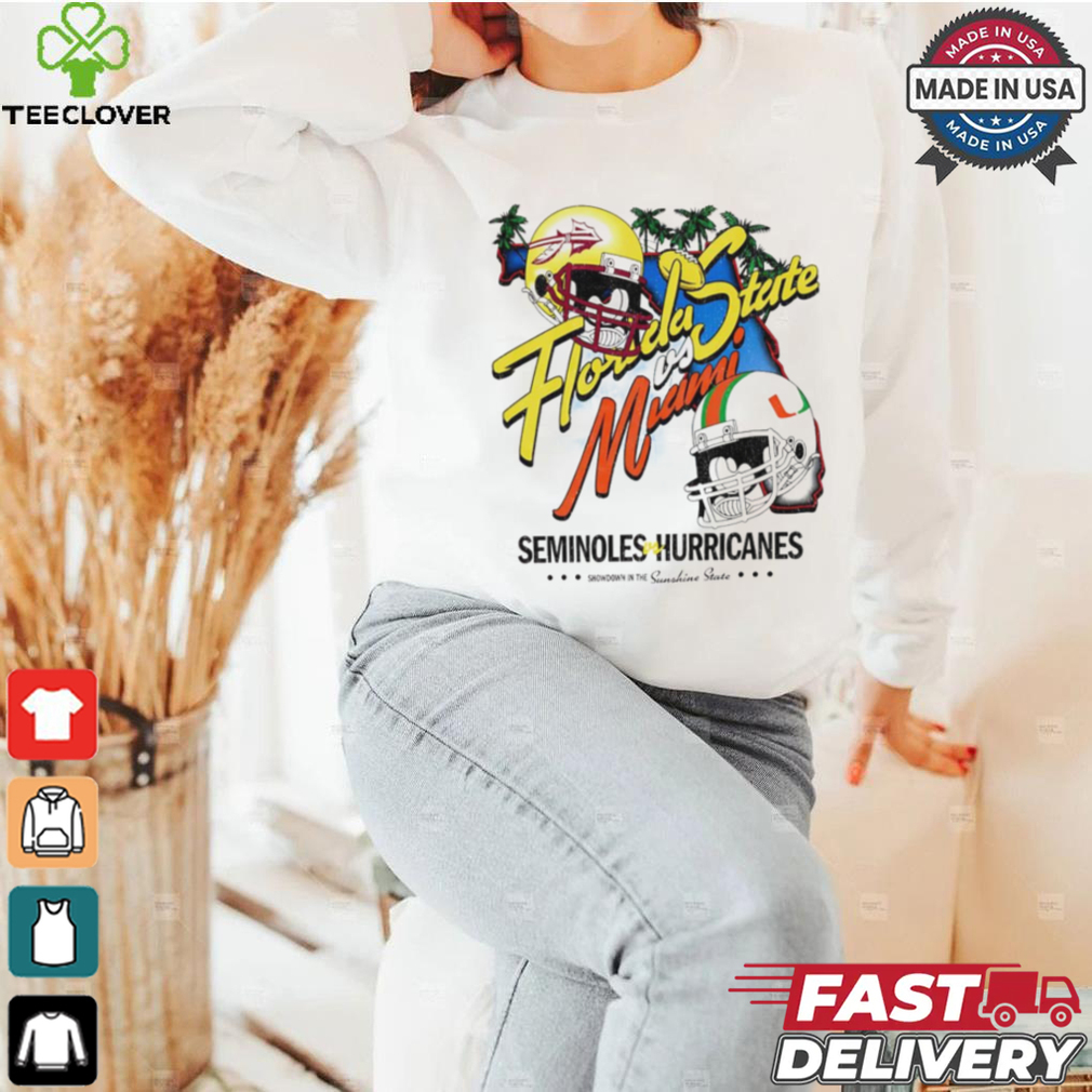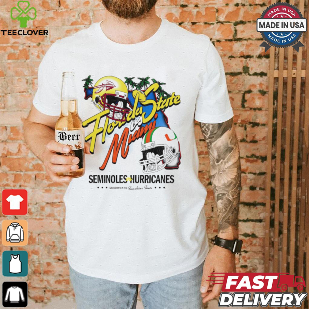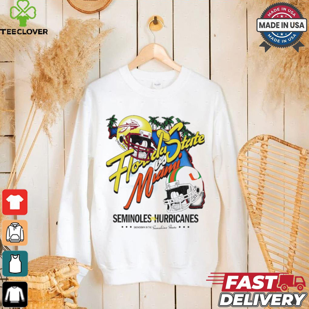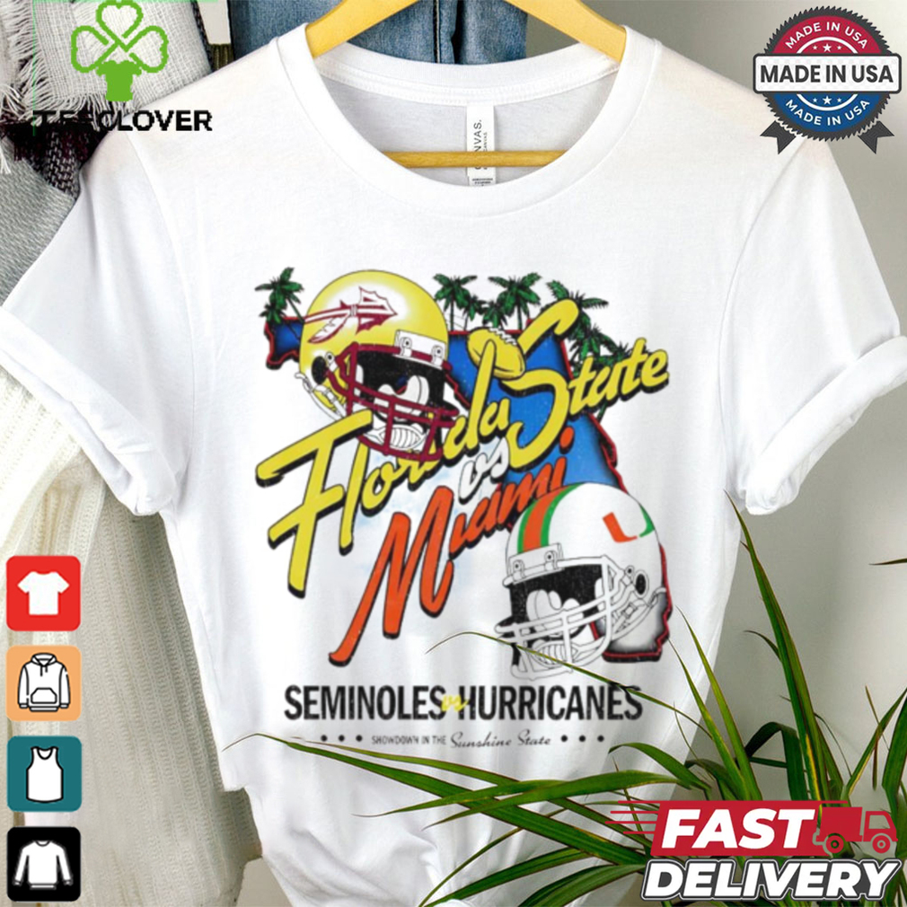 ()Florida State vs Miami Seminoles on Hurricanes NCAA helmet shirt