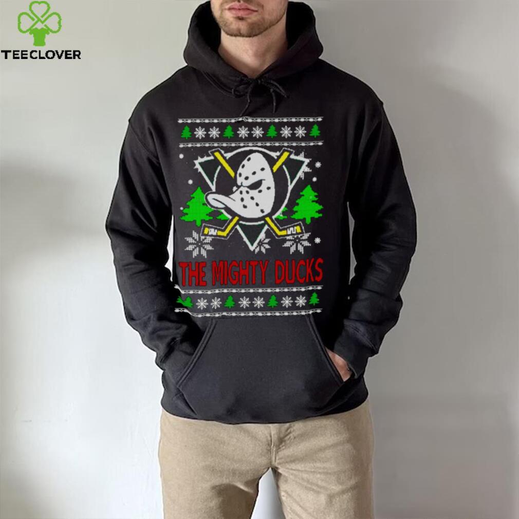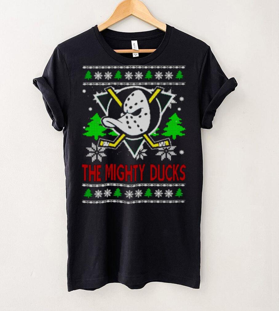 My funny story is when Santa put himself on the naughty list. I travelled the Funny The Mighty Sports Ducks Christmas shirt home from work a few years ago, and I enjoyed all the Christmas lights and decorations every night. One house had a huge blow up Santa on top of the garage, with his arm raised, waving at you when the wind blew. One day I left work early, and it was still daylight. As I turned the corner on this windy day, I saw Santa was a bit deflated. He was slightly bent over and his arm had fallen down so that his hand was between his legs, and the wind was blowing a bit, and he was gently bobbing up and down, up and down, and he seemed to be enjoying himself entirely too much! I was crying with laughter, and I can never look at Santa again without flashbacks.