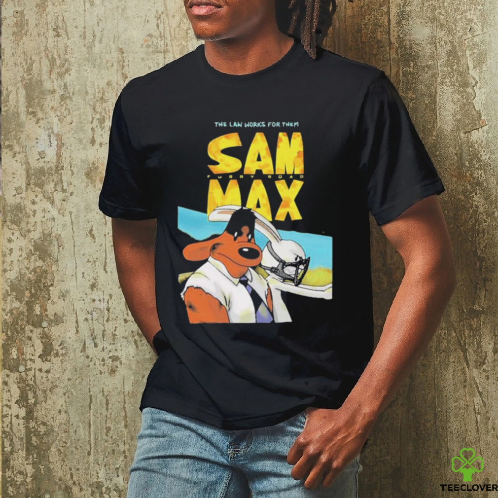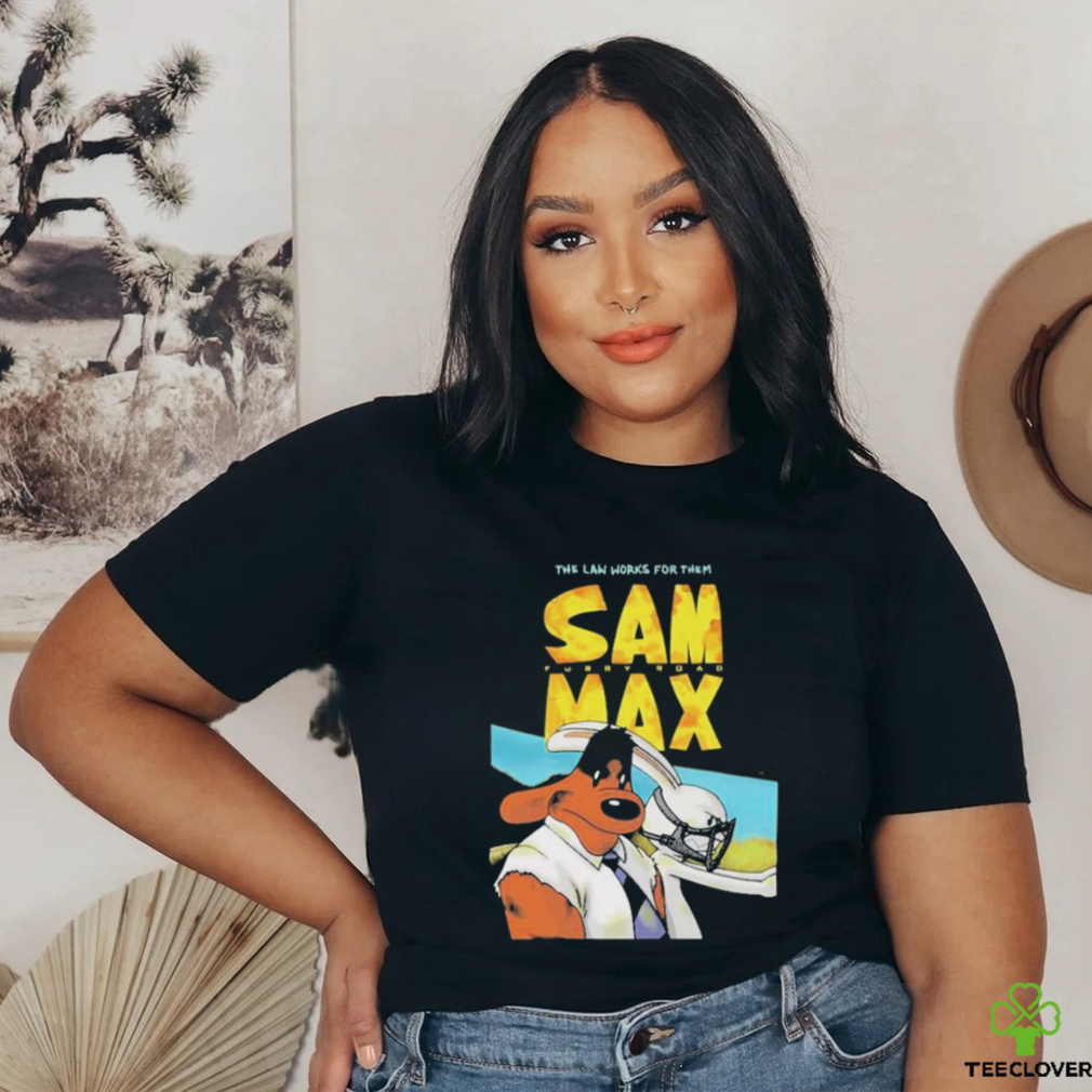 My funny story is when Santa put himself on the naughty list. I travelled the Furry Road Sam And Max Shirt home from work a few years ago, and I enjoyed all the Christmas lights and decorations every night. One house had a huge blow up Santa on top of the garage, with his arm raised, waving at you when the wind blew. One day I left work early, and it was still daylight. As I turned the corner on this windy day, I saw Santa was a bit deflated. He was slightly bent over and his arm had fallen down so that his hand was between his legs, and the wind was blowing a bit, and he was gently bobbing up and down, up and down, and he seemed to be enjoying himself entirely too much! I was crying with laughter, and I can never look at Santa again without flashbacks.